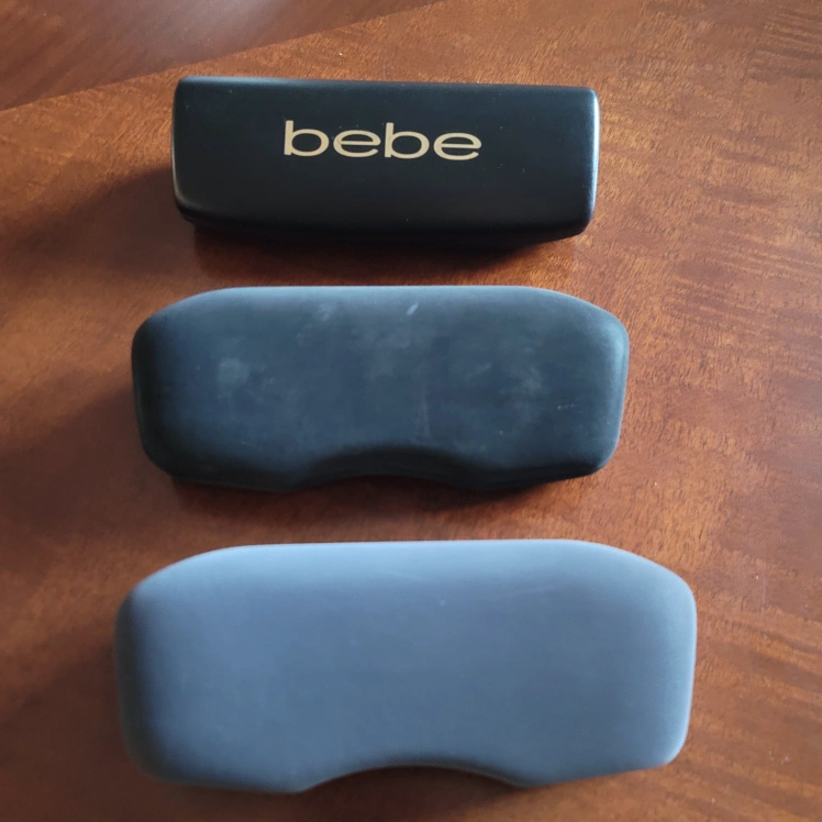 Selling three sunglasses cases. One is a Bebe case, and the other two are unbranded. They're in good condition and ready for a new home!