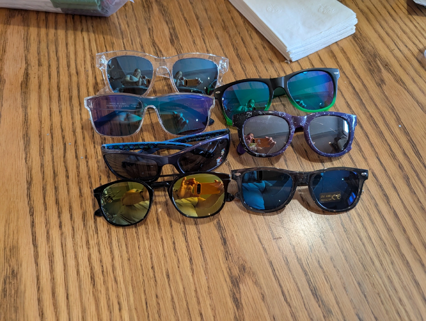 Selling a collection of sunglasses in various styles and colours. They're in good condition and ready for a new home! Perfect for sunny days. 5 dollars for the lot.