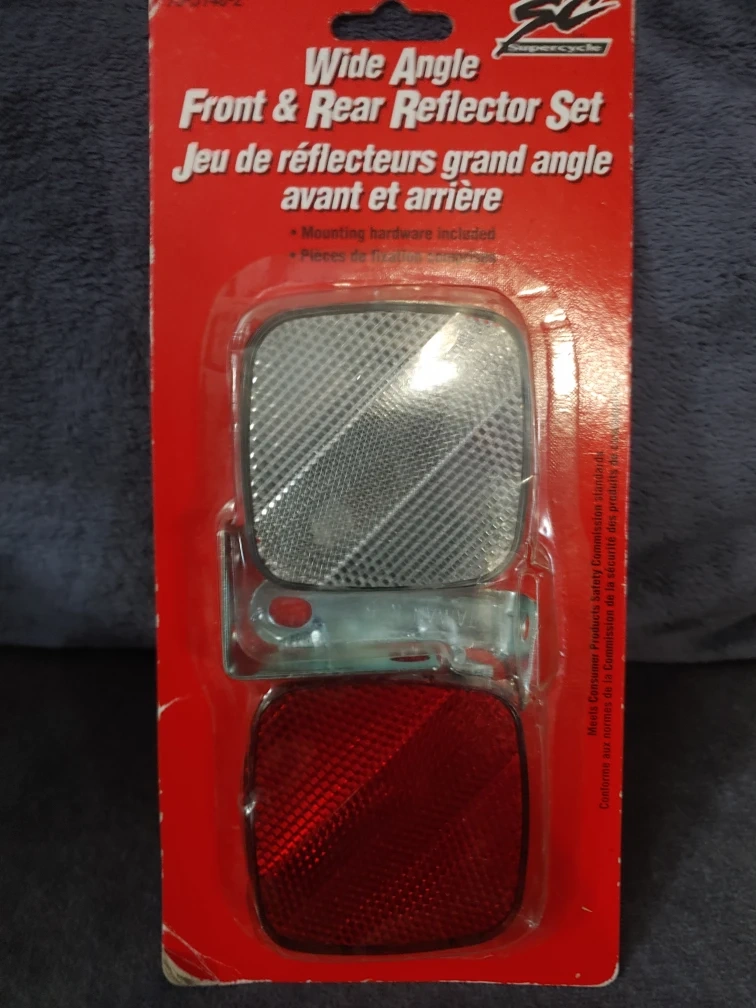 Selling a Supercycle Wide Angle Front & Rear Reflector Set. Mounting hardware is included. It's a great way to stay visible and safe while cycling!