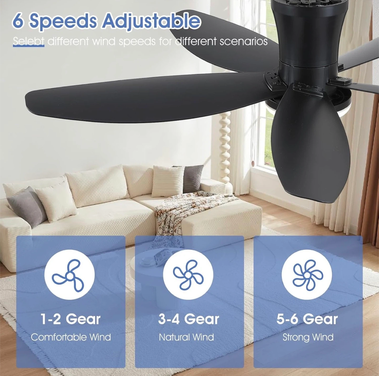 Colour: Black Size: 42” Use: Indoor, outdoor, all seasons (view photos) Condition: Brand new in box, never opened Surtime 42" Ceiling Fan with Lights-Low Profile Ceiling Fan with Light and Remote/APP Control,Flush Mount,DC Reversible,LED Dimmable Black Ceiling Fan for Bedroom,Indoor/Outdoor Patio Use