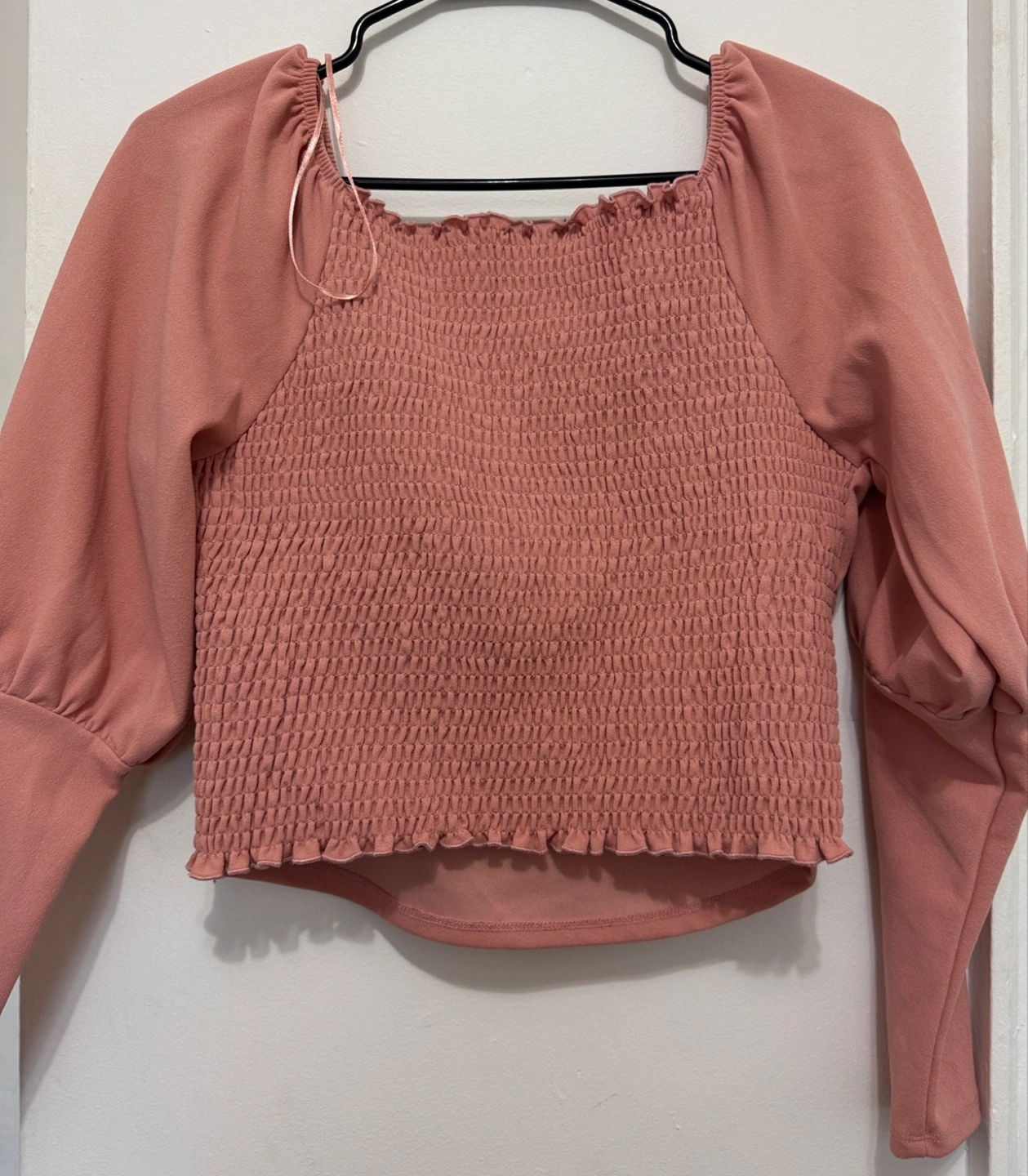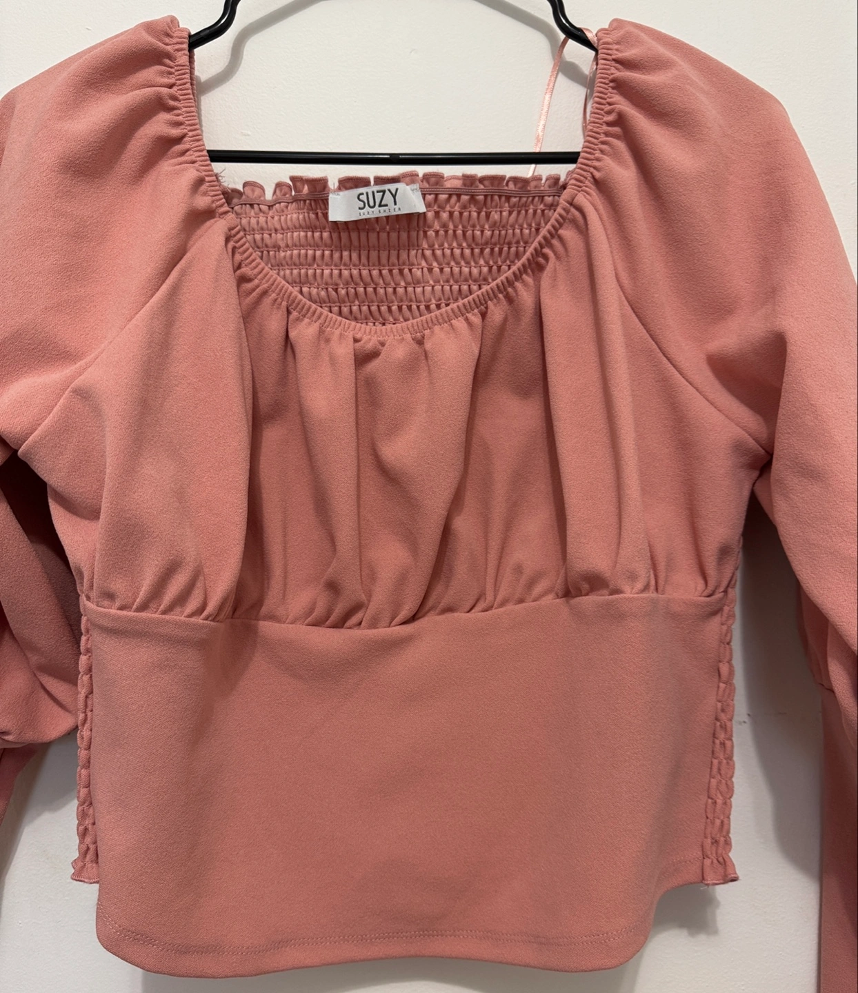 Selling a cute pink smocked top from Suzy Shier. Wore it only twice and perfect for adding a touch of sweetness to your outfit. The smocked detailing adds a lovely texture and a comfortable fit. Is it available will not be answered!!