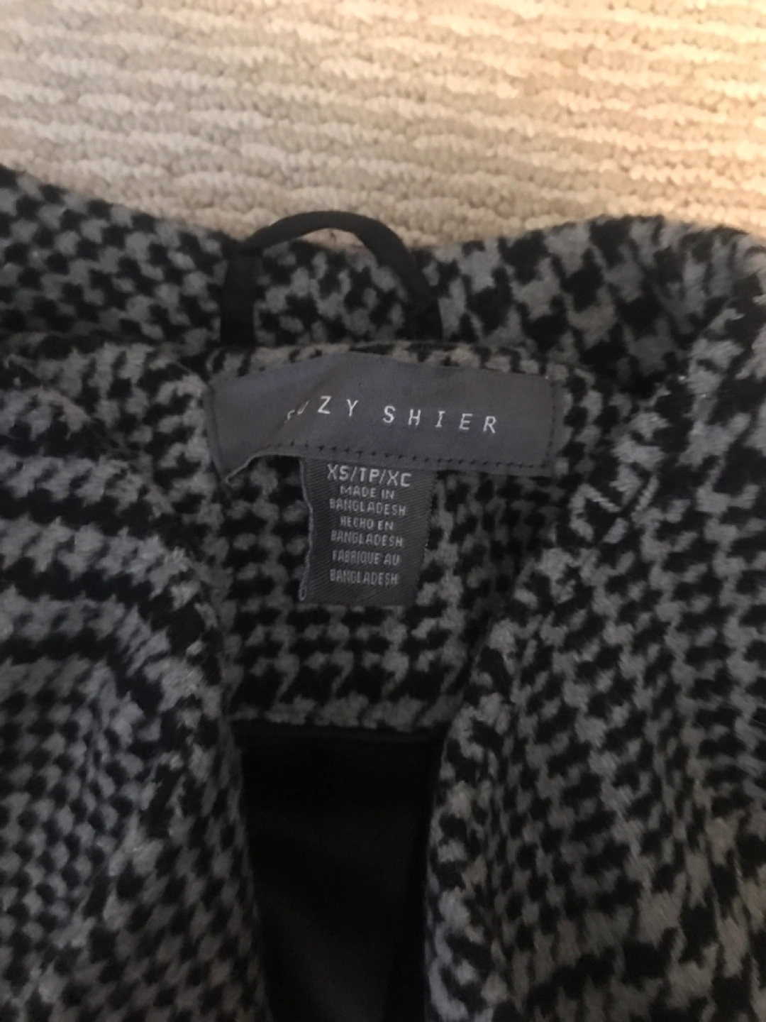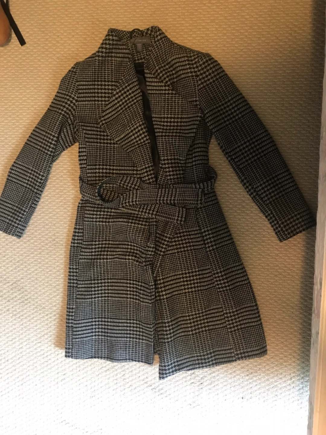 Selling a Hazy Shier belted trench coat in size XS/TP. It features a classic houndstooth pattern. Perfect for fall!