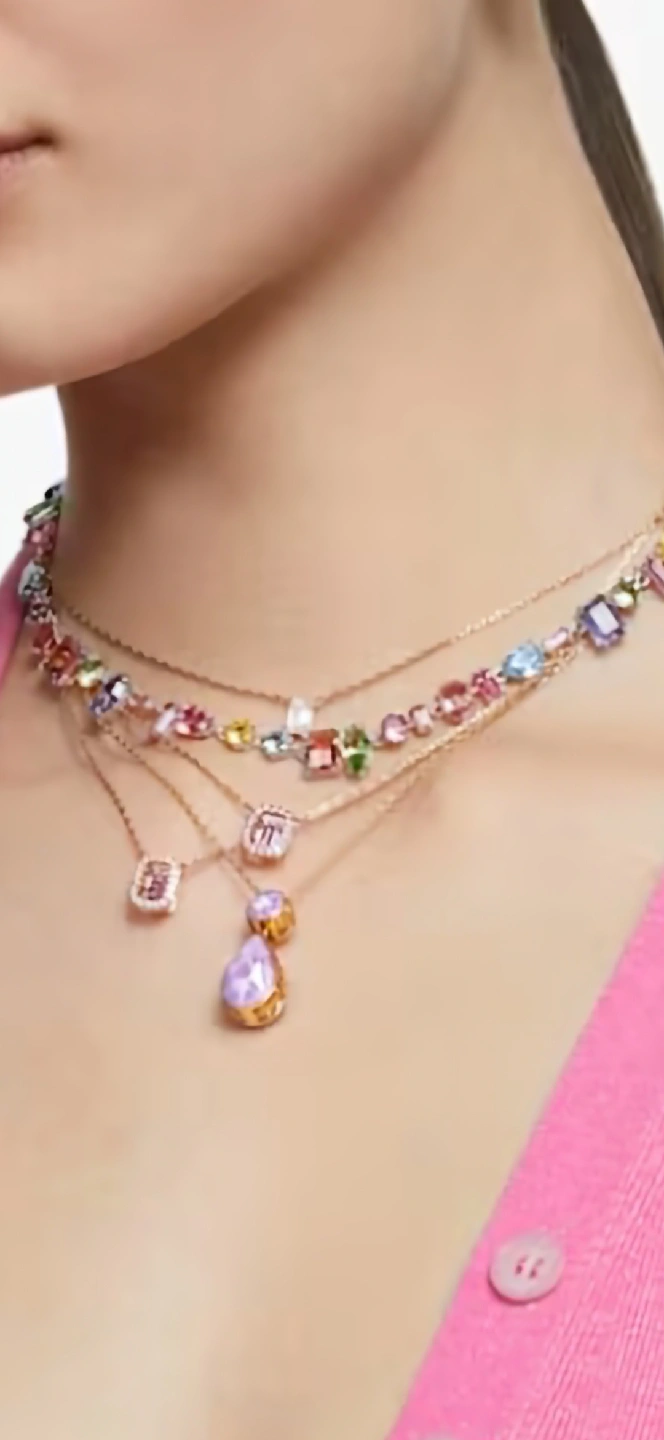 Add a touch of sparkle with this beautiful Swarovski All Around necklace! It features a stunning array of colourful crystals in various shapes and sizes. The necklace comes with its original box and packaging, perfect for gifting or safekeeping. This eye-catching piece is sure to turn heads!