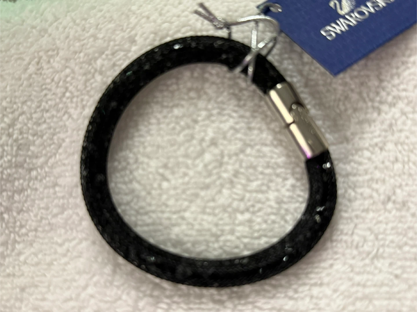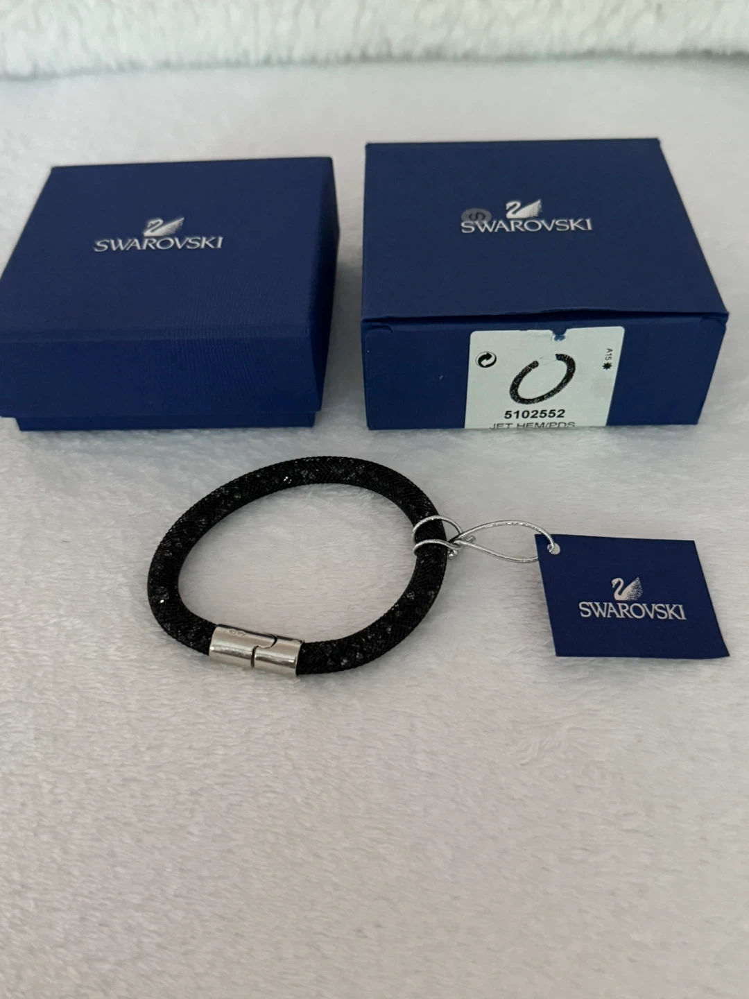 Selling a lovely Swarovski Stardust bracelet in black. It's in great condition and comes with its original box. The bracelet is 18cm in size. Perfect for adding a touch of sparkle to any outfit