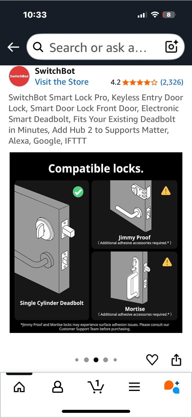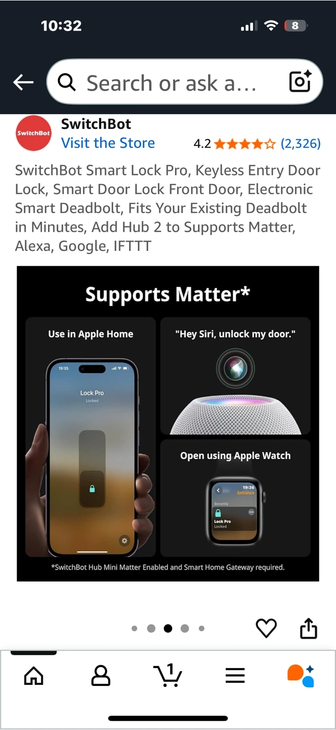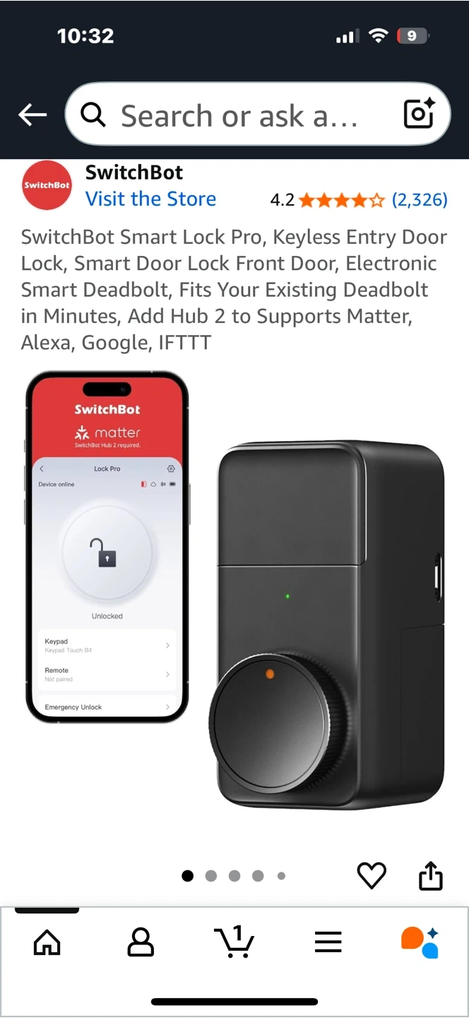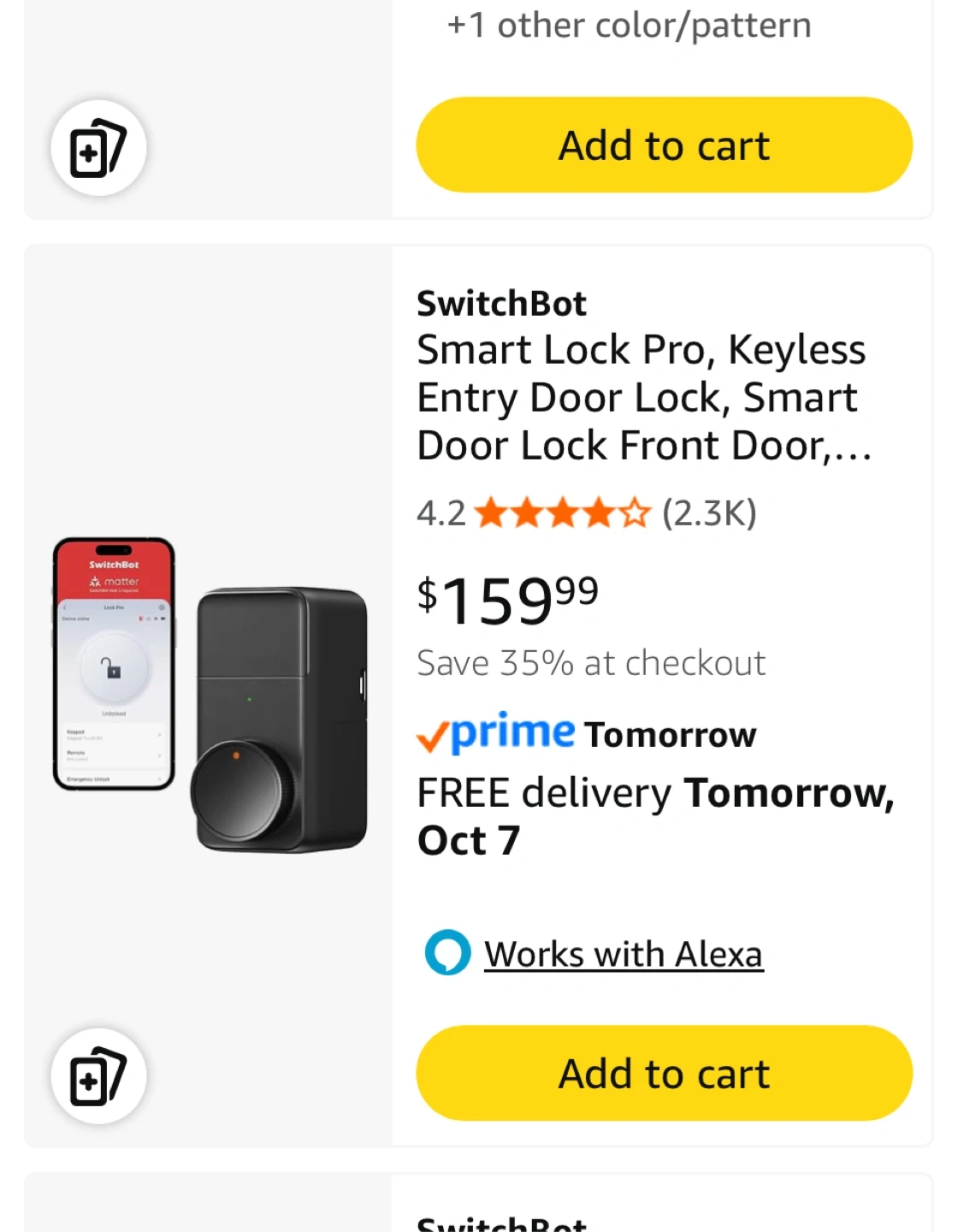 Selling a SwitchBot Lock Pro smart door lock. It's a keyless entry system that fits your existing deadbolt in minutes. It also supports Matter, Alexa, Google, and IFTTT. Works with Apple Home and supports your physical keys. Originally bought for $159.99. Box included New open box