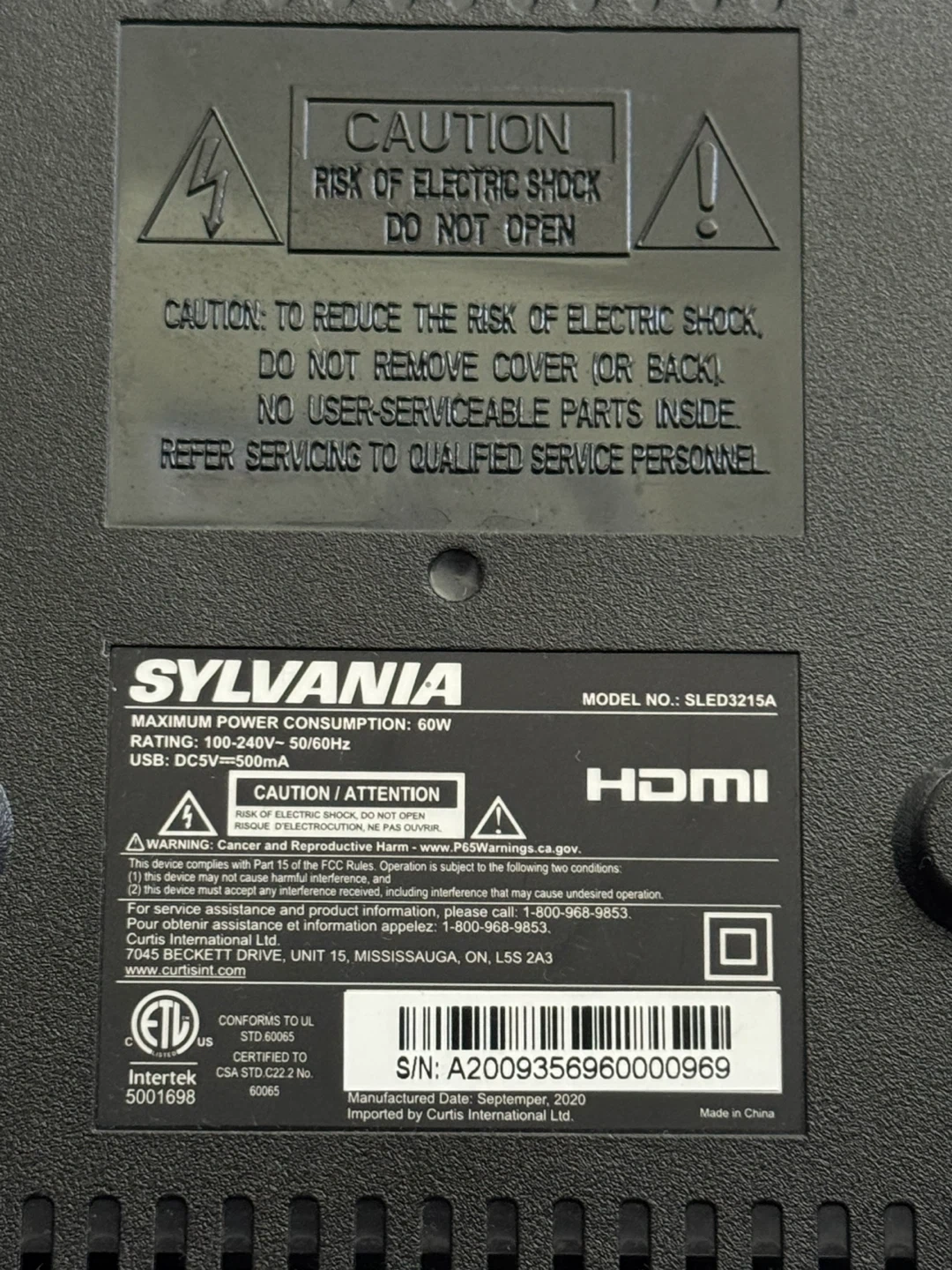Selling a Sylvania 32-inch LED TV. The model number is SLEd3215A. It has HDMI ports for connectivity. **NO REMOTE** Cluttering storage. FIRST COME, FIRST SERVED.