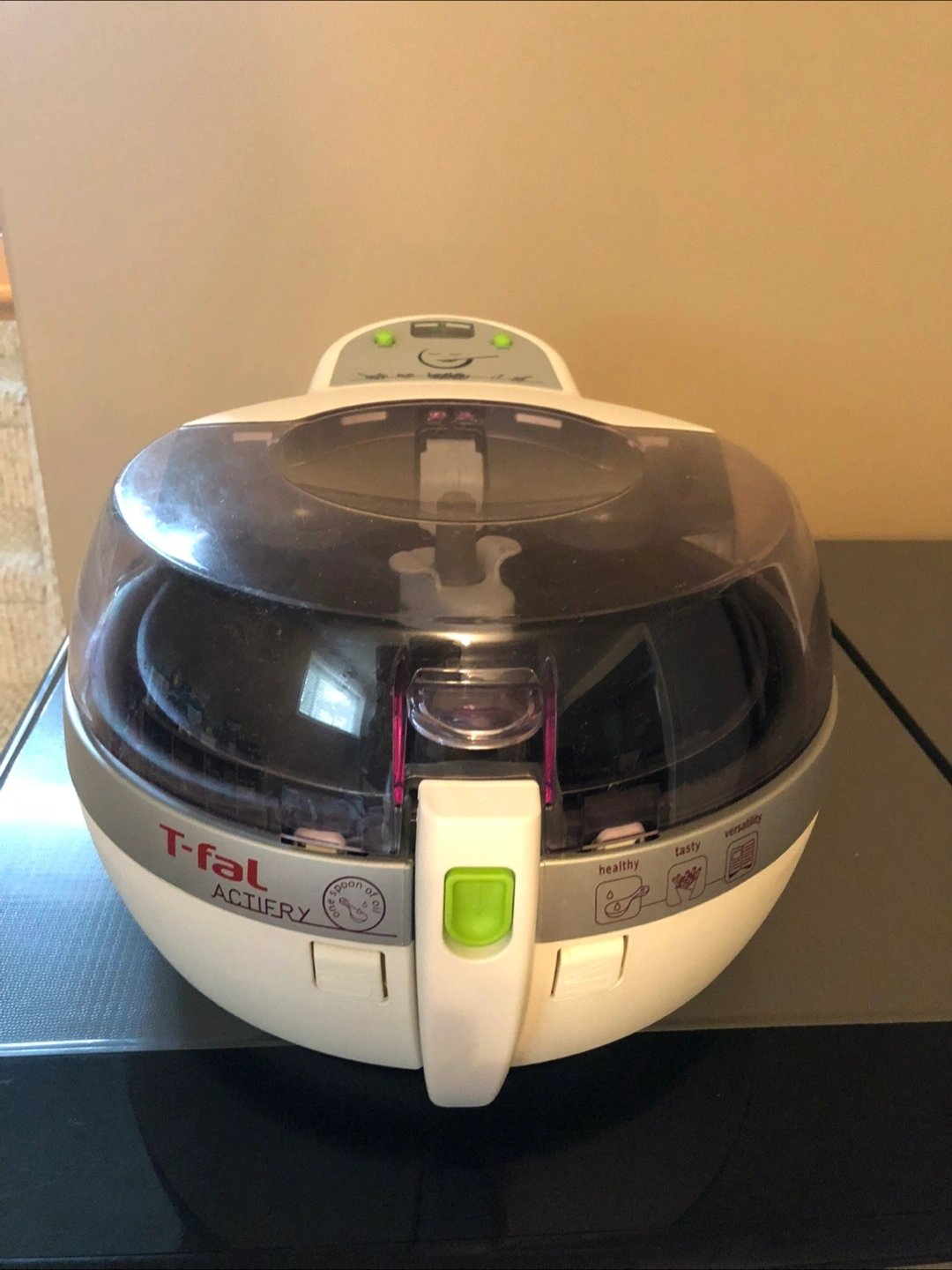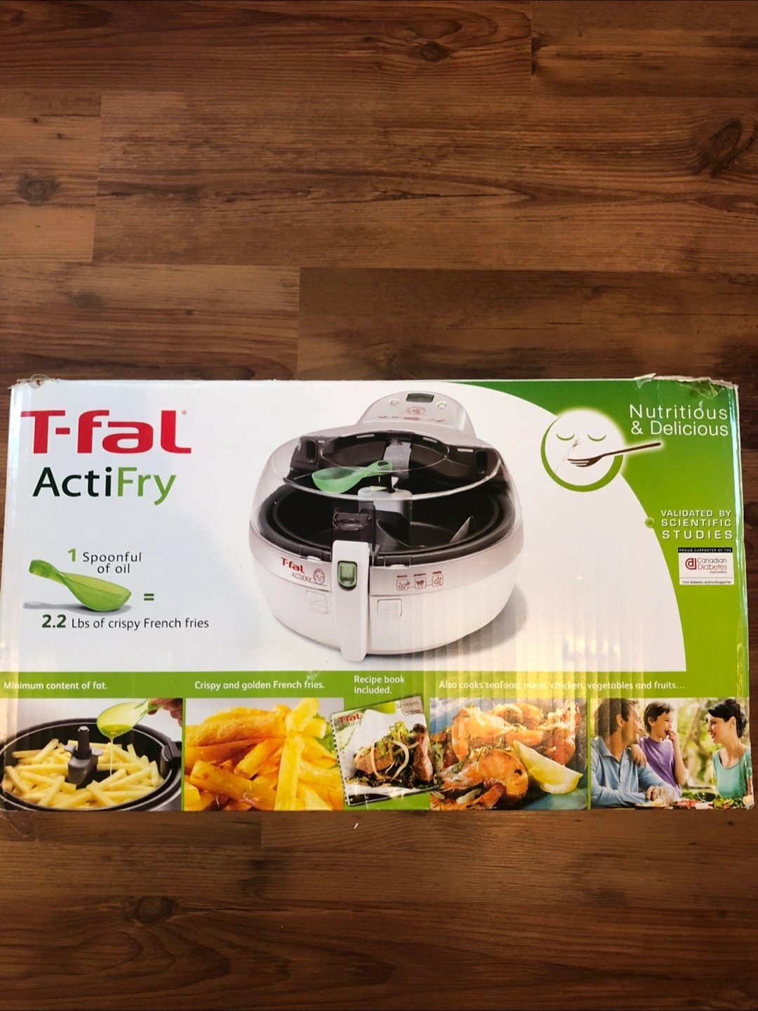Selling a T-fal ActiFry air fryer. It's in great condition and comes with the recipe book included! It uses only 1 spoonful of oil for 2.2 lbs of crispy french fries. Also cooks seafood, meat, chicken, vegetables and fruits!
