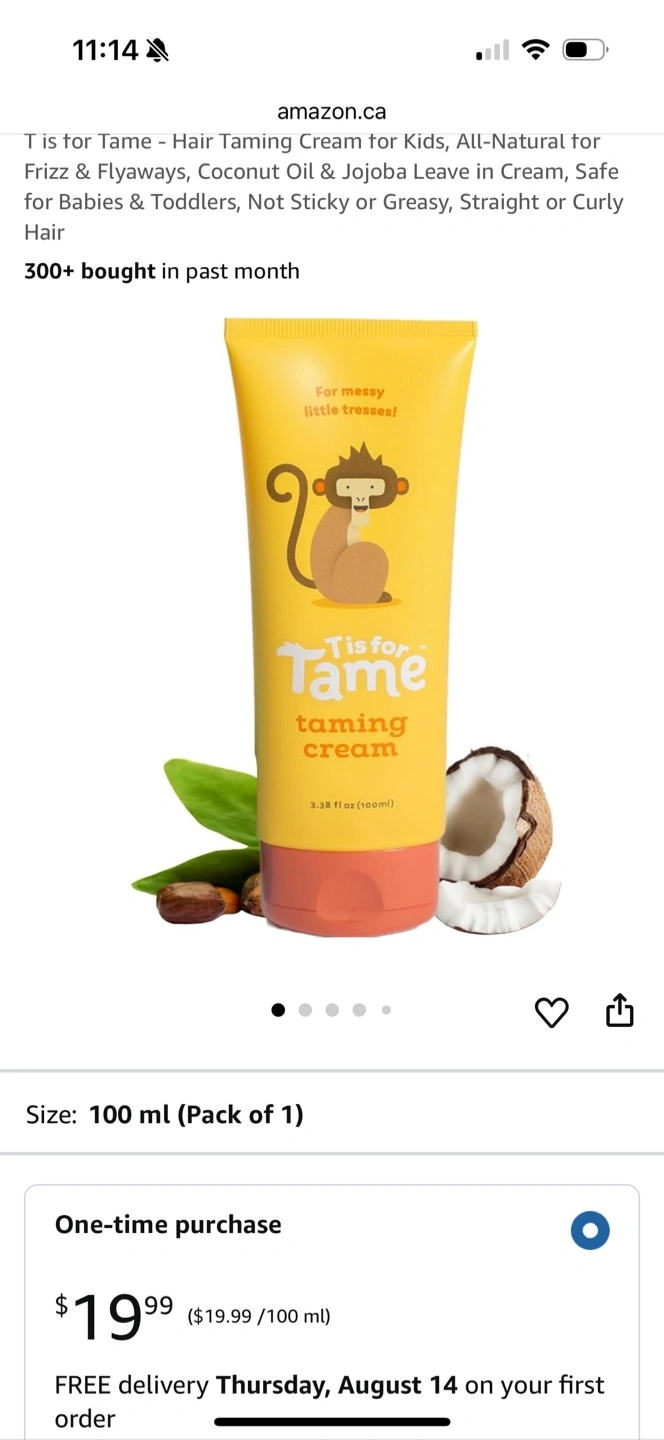 Keep your little one's hair looking neat with T is for Tame taming cream! This cream is all-natural, plant-based, and vegan, perfect for gentle care. It nourishes with coconut and jojoba, smoothing and softening with every use. Originally bought for $19.99. 3.3 fl oz (100ml) Meet up & cash only pls Meet up is in Nobleton