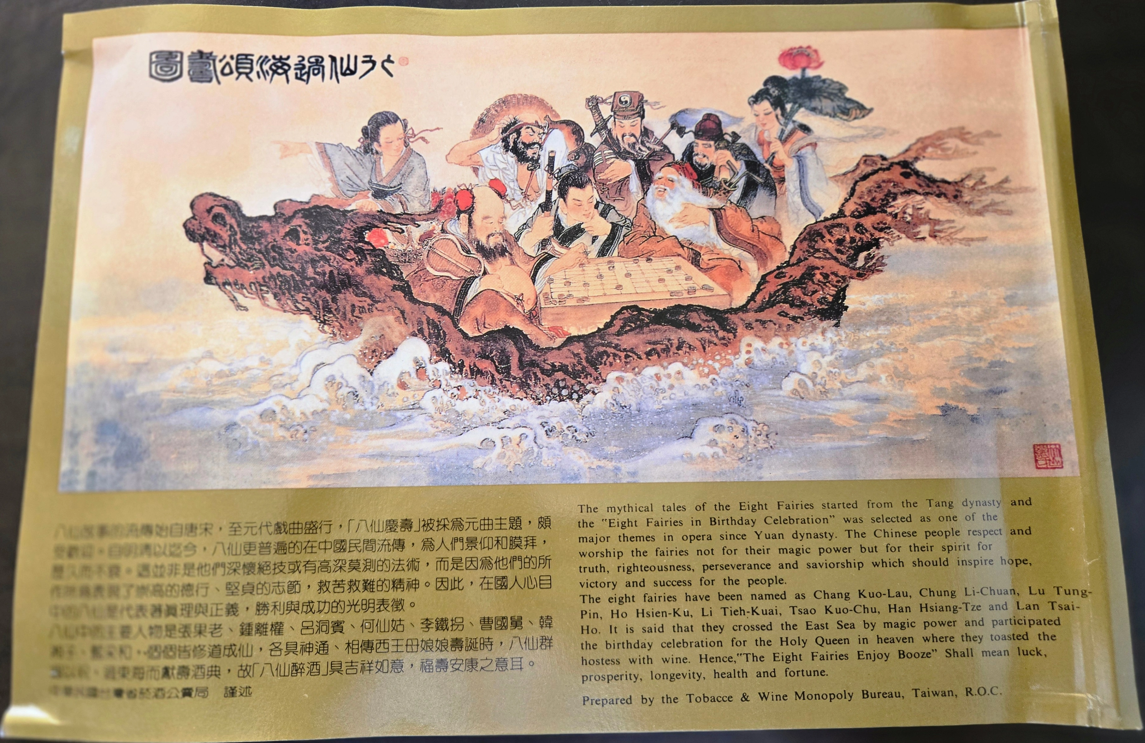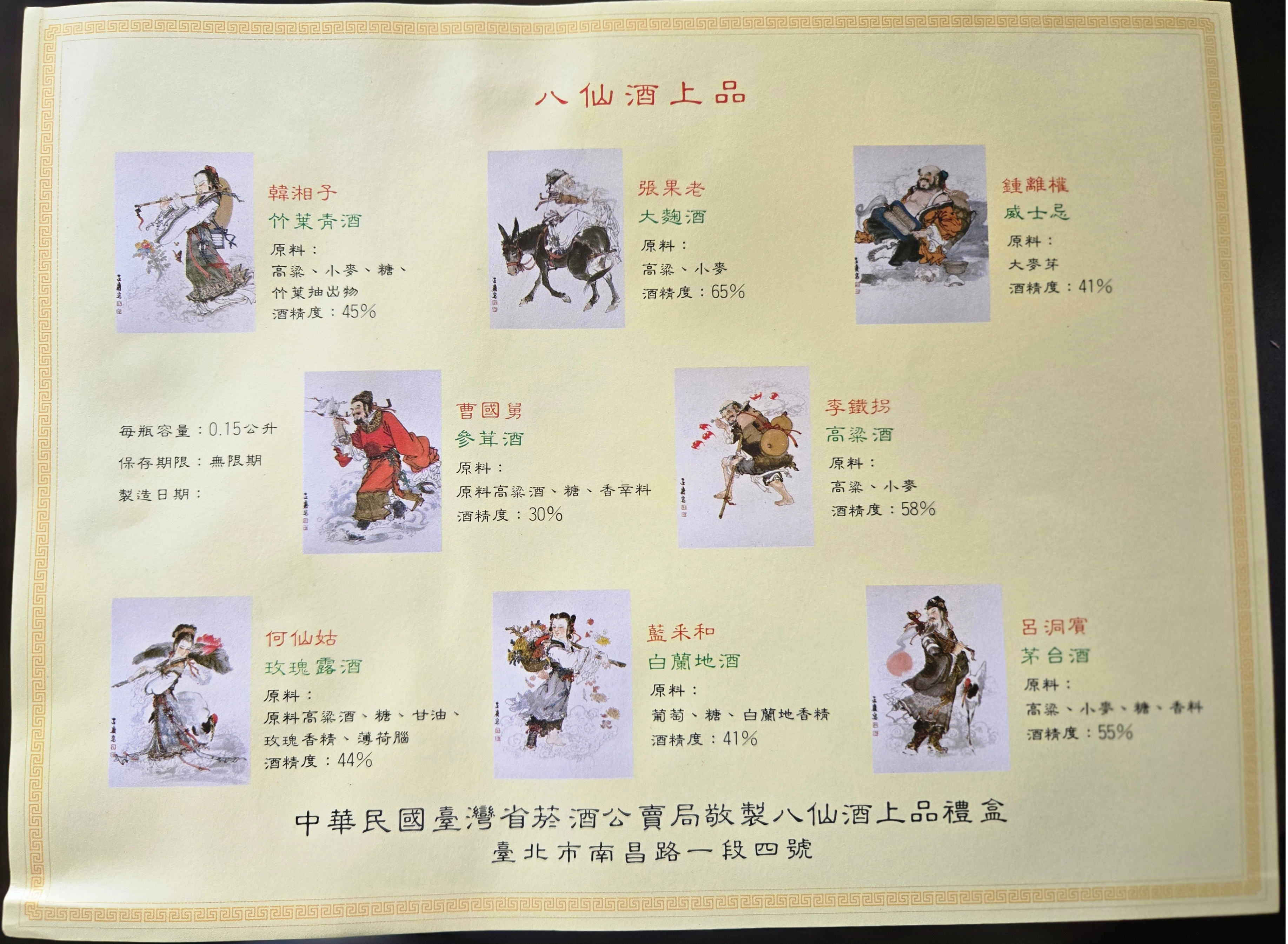 Wood BIRTHDAY BOX with 8 Ceramic Decanters, each depicting one of the 8 Fairies / Immortals," Eight Fairies in Birthday Celebration " started from the Tang Dynasty. This is a Vintage Set Meant to be displayed! Wood Box Measurement: 13''x9-1/2''x3-1/4'' Decanters Measure 4-1/4'' TallRAREWould Make a Great Gift! Unopened Ba Xian Fine Wine Ceramic Mini Bottle 8-Piece Set Wooden Box Included Aged Liquor Chinese Liquor Taiwanese 150ml 30%–65%