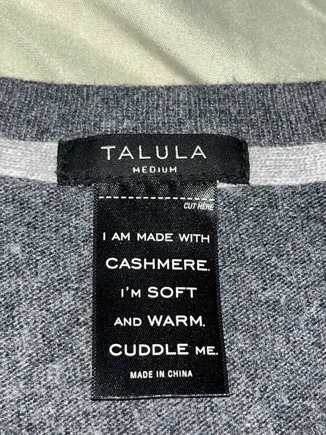 Incredibly soft and comfortable Talula sweater! It's a size medium and made with soft cashmere, perfect for staying warm. It's a stylish dark grey colour with lighter grey elbow patches and in great condition!