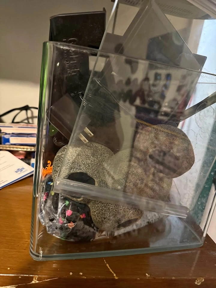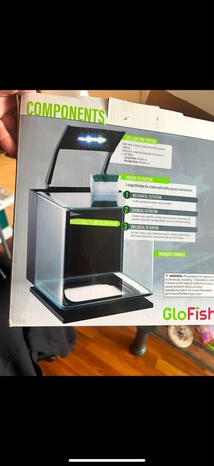 Halfmoon 3 gallon Aquarium kit with decorations, heater, filter.
