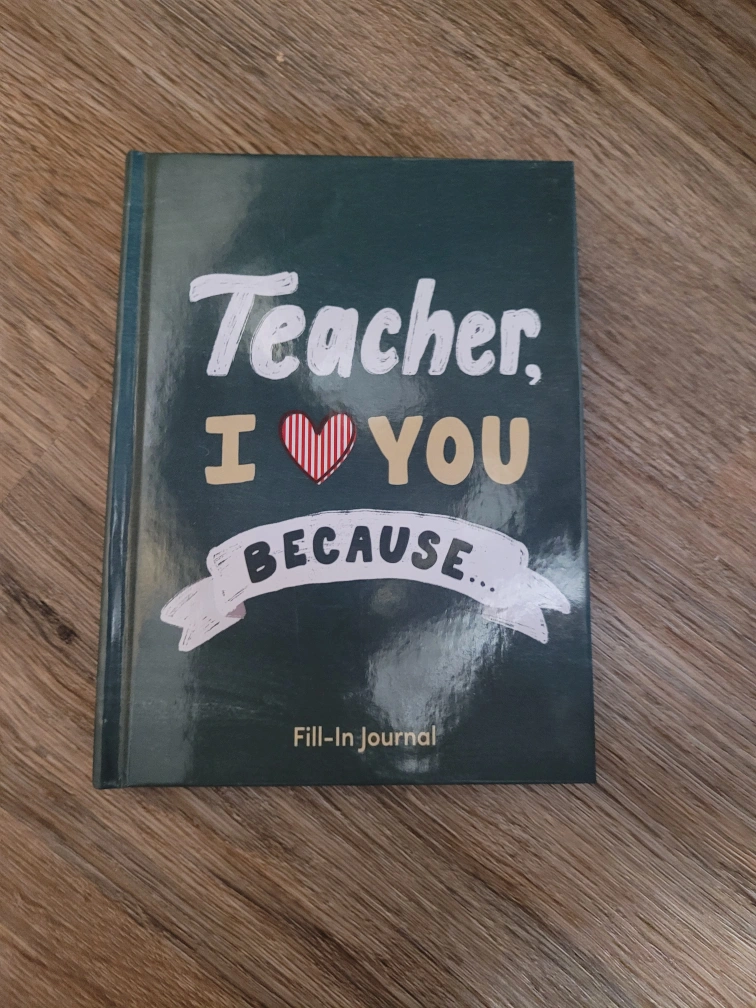 gifting a 'Teacher, I Love You Because...' fill-in journal. It's perfect for showing appreciation to a special teacher in your life. A thoughtful and heartfelt gift!