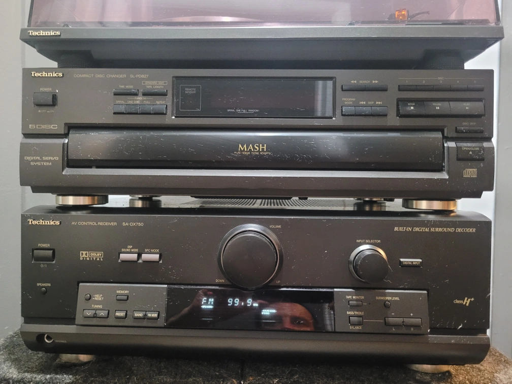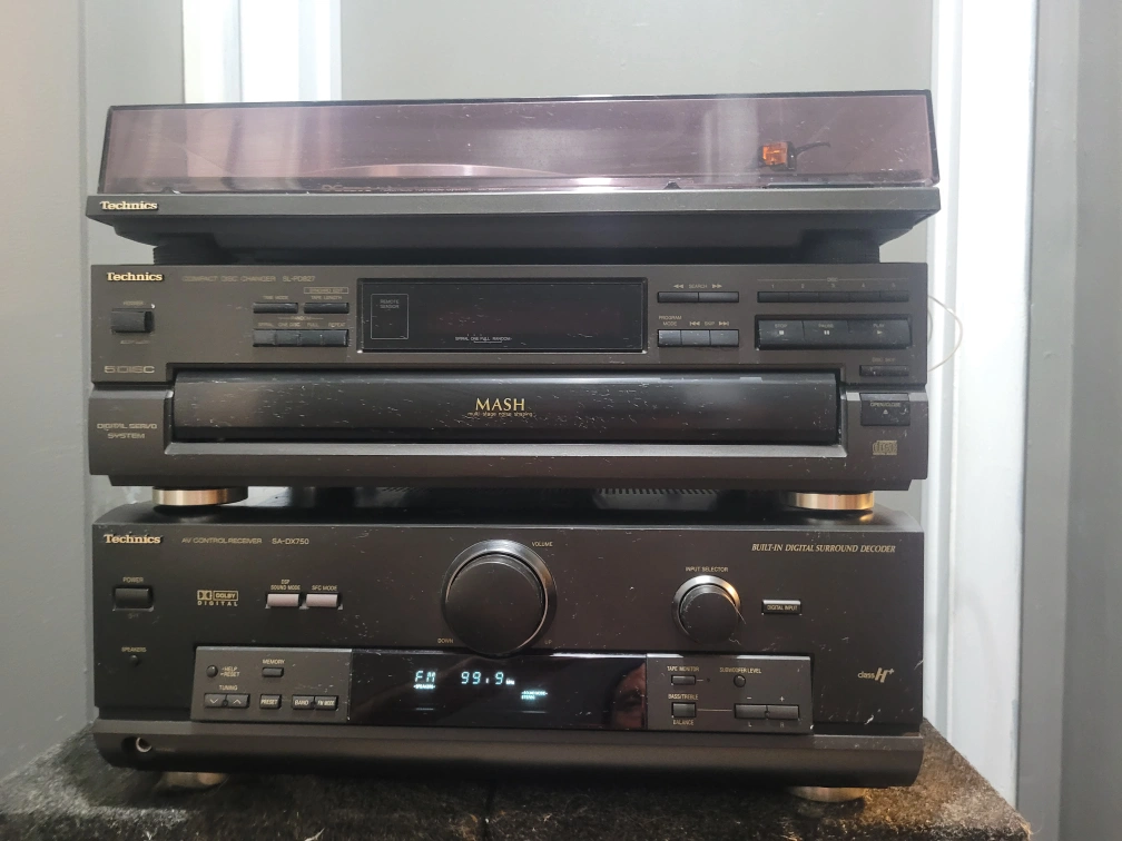 Technics stereo receiver.Turn table and five disc changer a pair of Paragon Pro-Series speakers. They're in good condition and ready to bring some serious sound to your space!