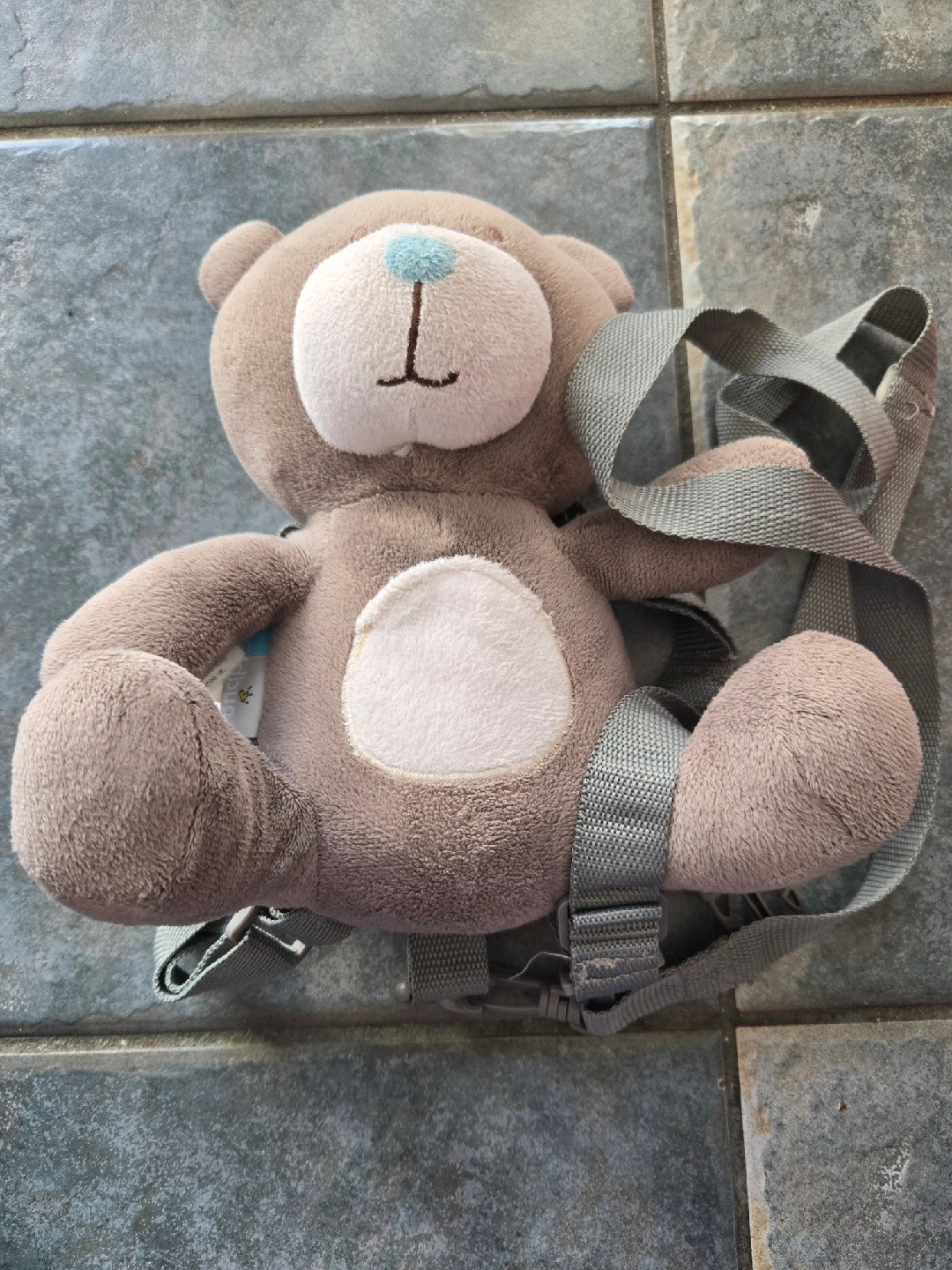This cute teddy bear backpack comes with a harness! It's perfect for keeping your little one safe and close by while out and about. The backpack is in great condition and ready for a new home