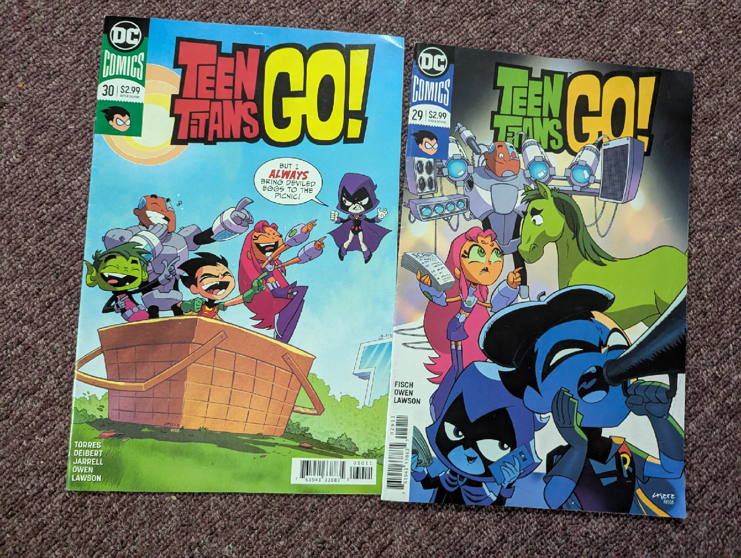 Selling two issues of Teen Titans Go! comics from DC Comics. Included are issue #29 and issue #30. Both are in great condition!