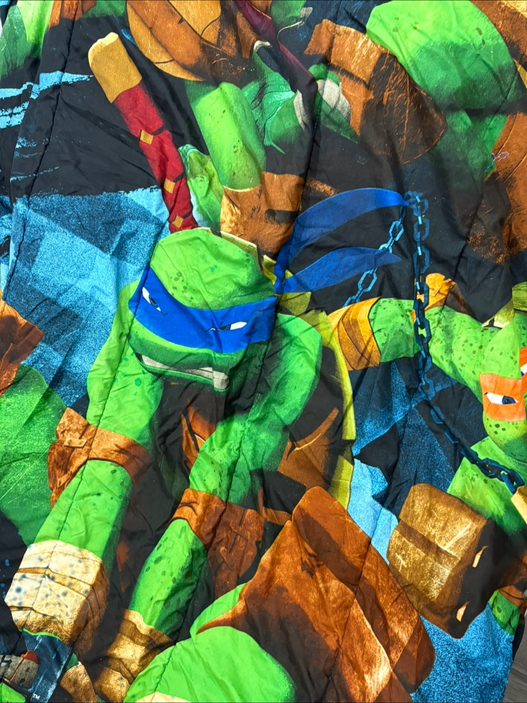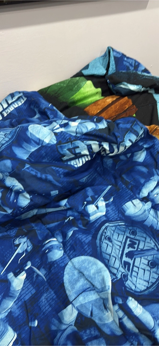 Teenage Mutant Ninja Turtles comforter. Single size as seen in the picture blue from the back and green from the front side