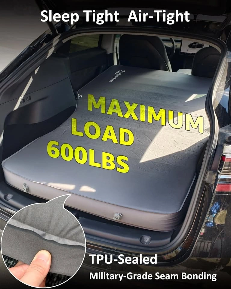Tesla Model Y SUV Memory Foam Camping Mattress New in box Pickup in Barrhaven, Mountshannon and Daventry street intersection. Custom fit for Tesla Model Y (also works with Model X, Rivian R1S, RAV4 & SUVs) Size: 53" x 75" x 4" Hybrid design: 4" memory foam core + airtight outer layer Bedroom-level comfort with adjustable firmness Dual check valves – no leaks, stays firm overnight Rugged polyester base + plush stain-resistant knit surface German OEM air pump for fast inflation/deflation (3–4 minutes) Rolls up compactly for easy storage and travel