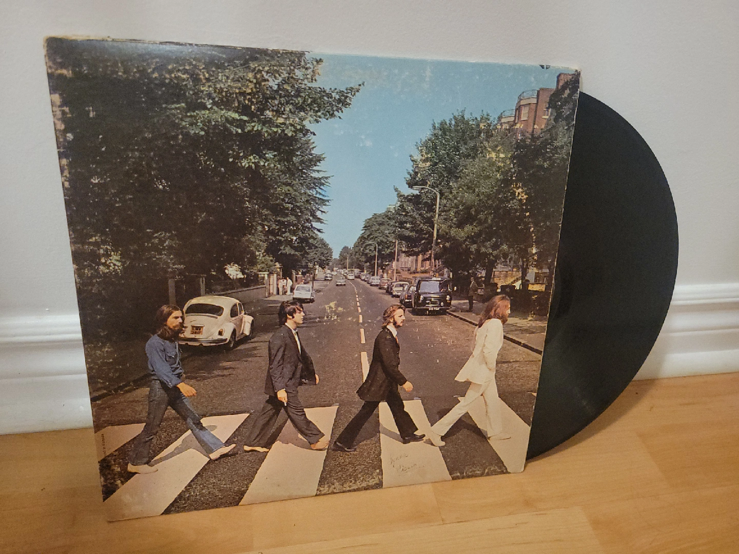 Selling a copy of The Beatles' "Abbey Road" album. Record in excellent condition, some wear on sleeve