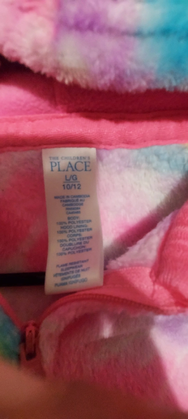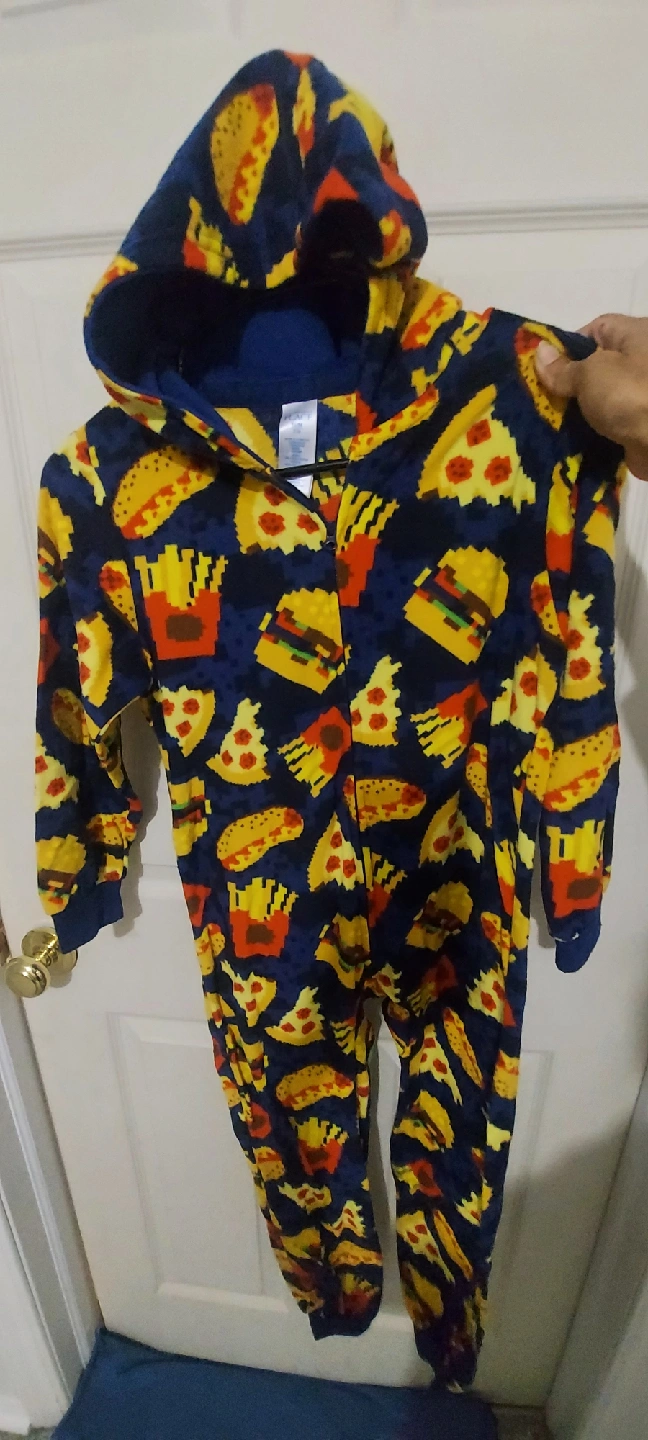 Selling two cozy fleece onesies from The Children's Place! One is a fun fast food pattern in size M (7/8), and the other is a colourful tie-dye pattern with cute pom poms in size L (10/12) Both are made of 100% polyester and are in great condition for keeping your little one warm and snug! 10 $ for each