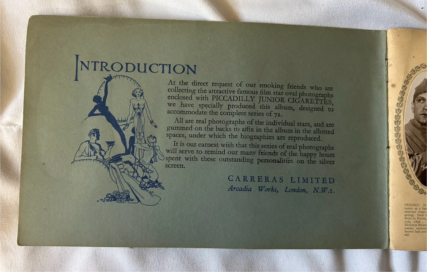 Selling a vintage "The Film Star Album" issued for Piccadilly Juniors Oval Film Star Photos. This album contains real photographs of famous film stars from the 1930s. A unique collectible for vintage photography and film enthusiasts!