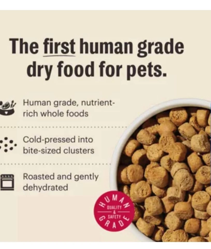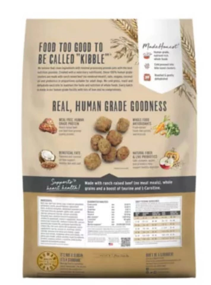 Selling a 20 lbs bag of The Honest Kitchen Whole Grain Beef & Oat Recipe dog food. It's made with ranch-raised beef (no meat meals), whole grains, and a boost of taurine and L-Carnitine. This food is human grade, nutrient-rich whole foods, cold-pressed into bite-sized clusters, and roasted and gently dehydrated. Packed with ingredients you can pronounce!