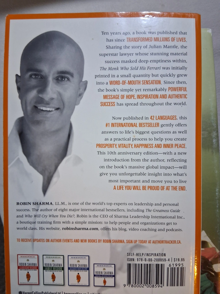 Selling Robin Sharma's "The Monk Who Sold His Ferrari: A remarkable story about living your dreams" 10th Anniversary Edition This book is a #1 international bestseller that offers answers to life's biggest questions as well as a practical process to help you create prosperity, vitality, and inner peace
