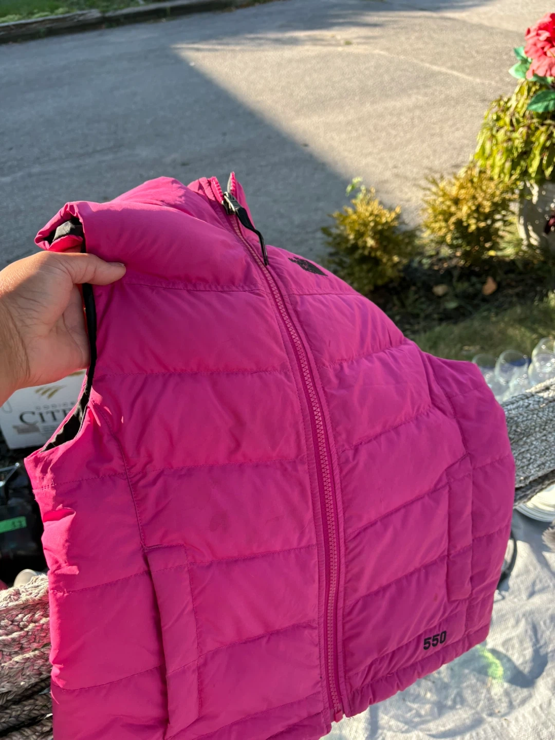 Selling a bright pink The North Face 550 vest! It's in great condition and ready to keep you warm on chilly days. There are some minor signs of use, but overall it looks great!