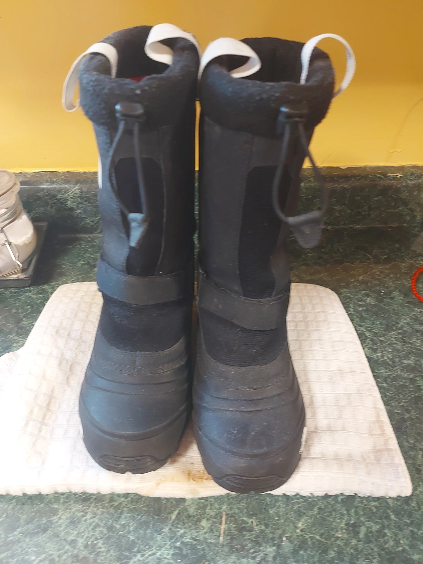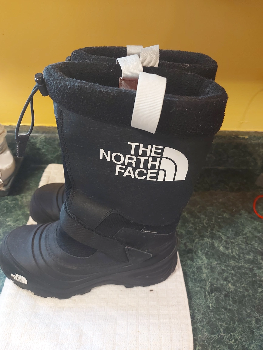 These are a pair of black winter boots from The North Face. They look like they're in great condition and ready to keep your kid's feet warm this winter! Juniors Size 5