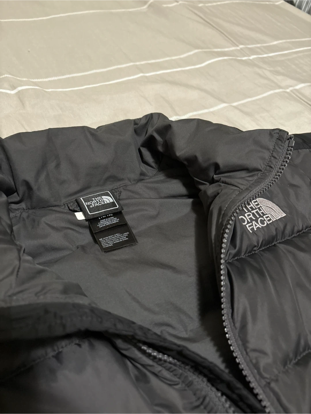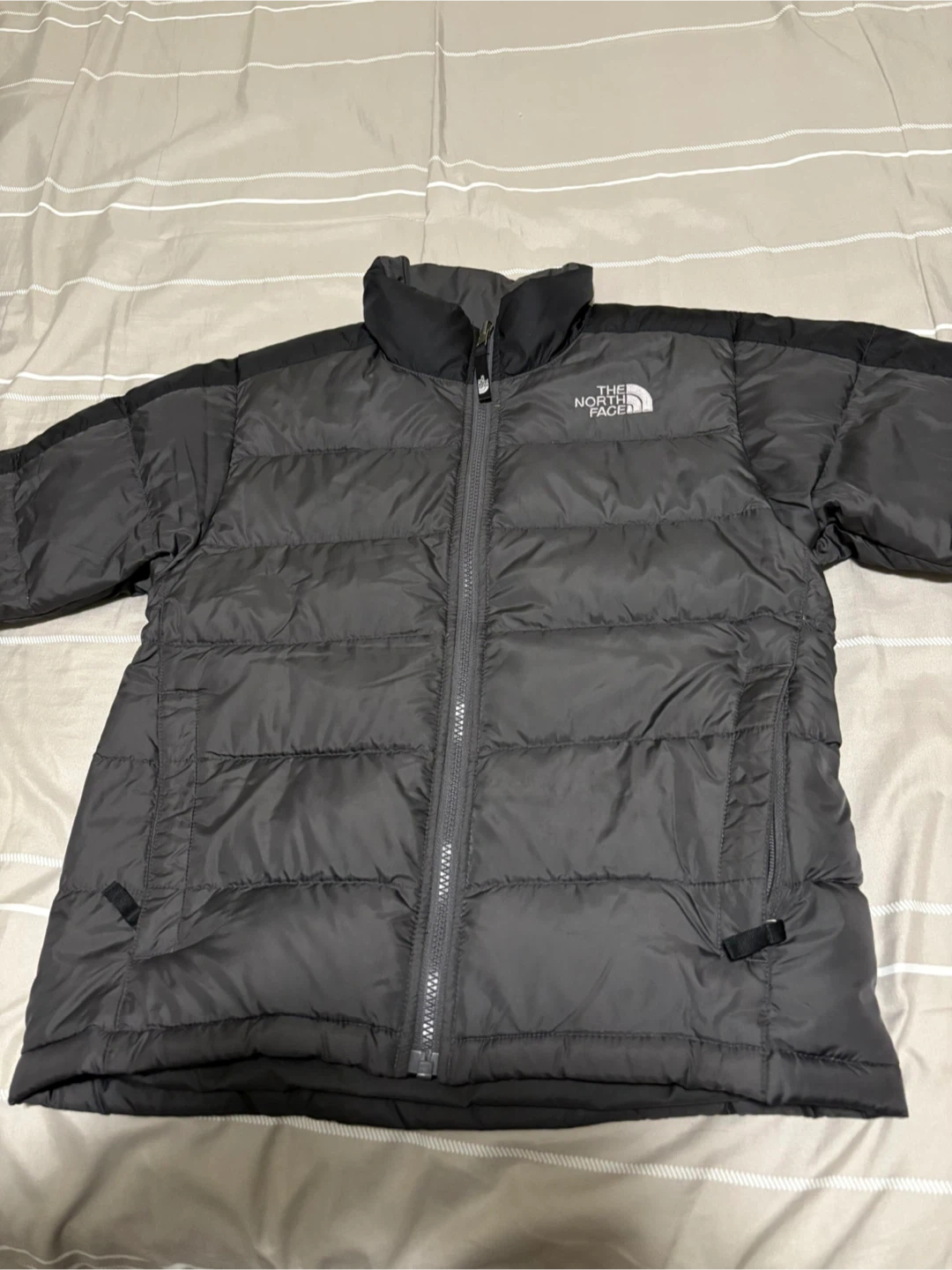 Selling a The North Face boys' puffer jacket. It's a size medium (10/12) and features 550-fill down insulation. The jacket is black and made with 100% nylon shell and lining, with recycled polyester in the body lining. It's in great condition and ready for the colder months! Send me an offer!