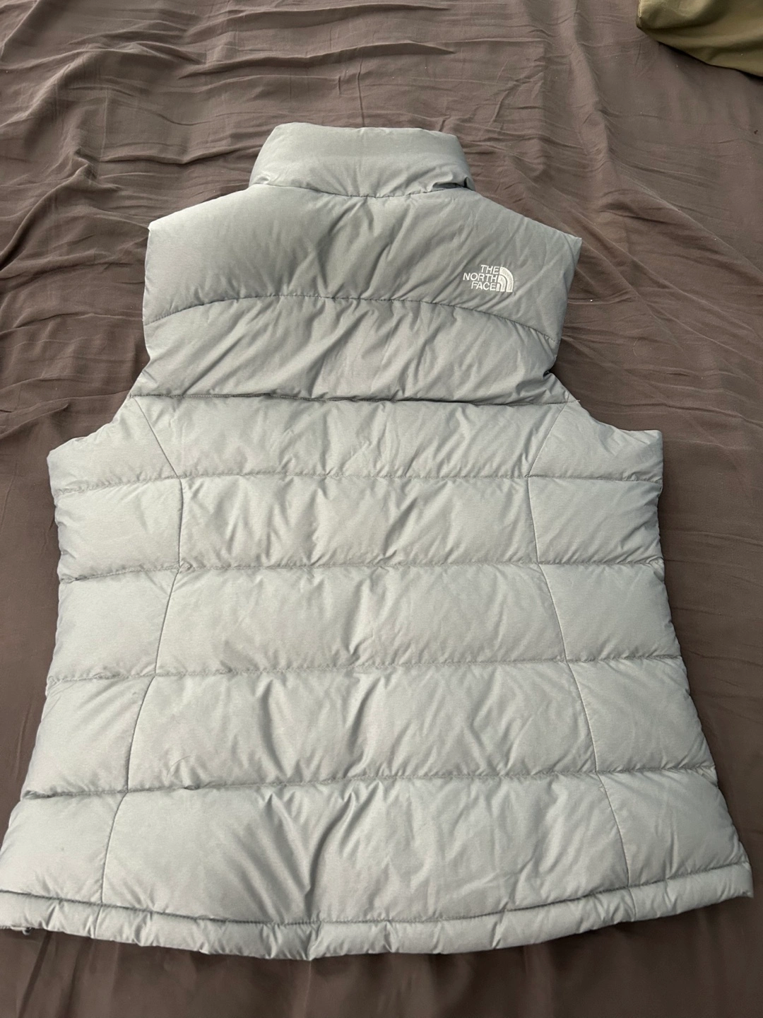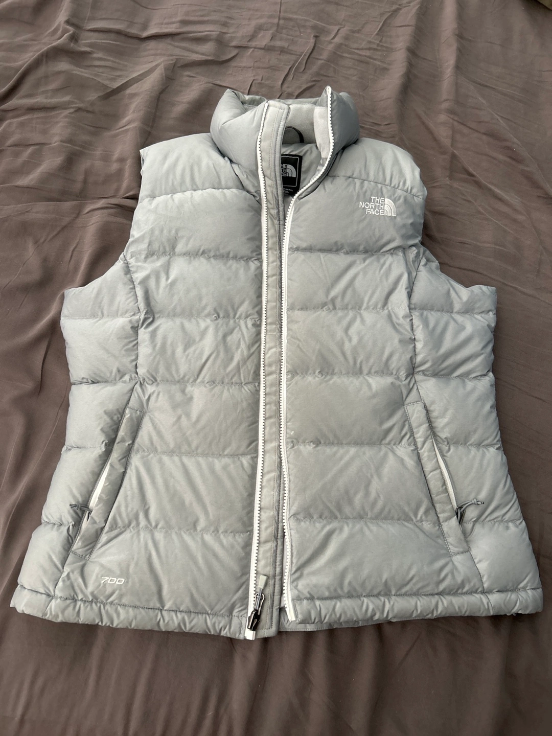 Selling a The North Face puffer vest in women's size large. It's a stylish and warm addition to any wardrobe. The vest features a 700 fill power, providing excellent insulation. It's in great condition and ready for a new home!