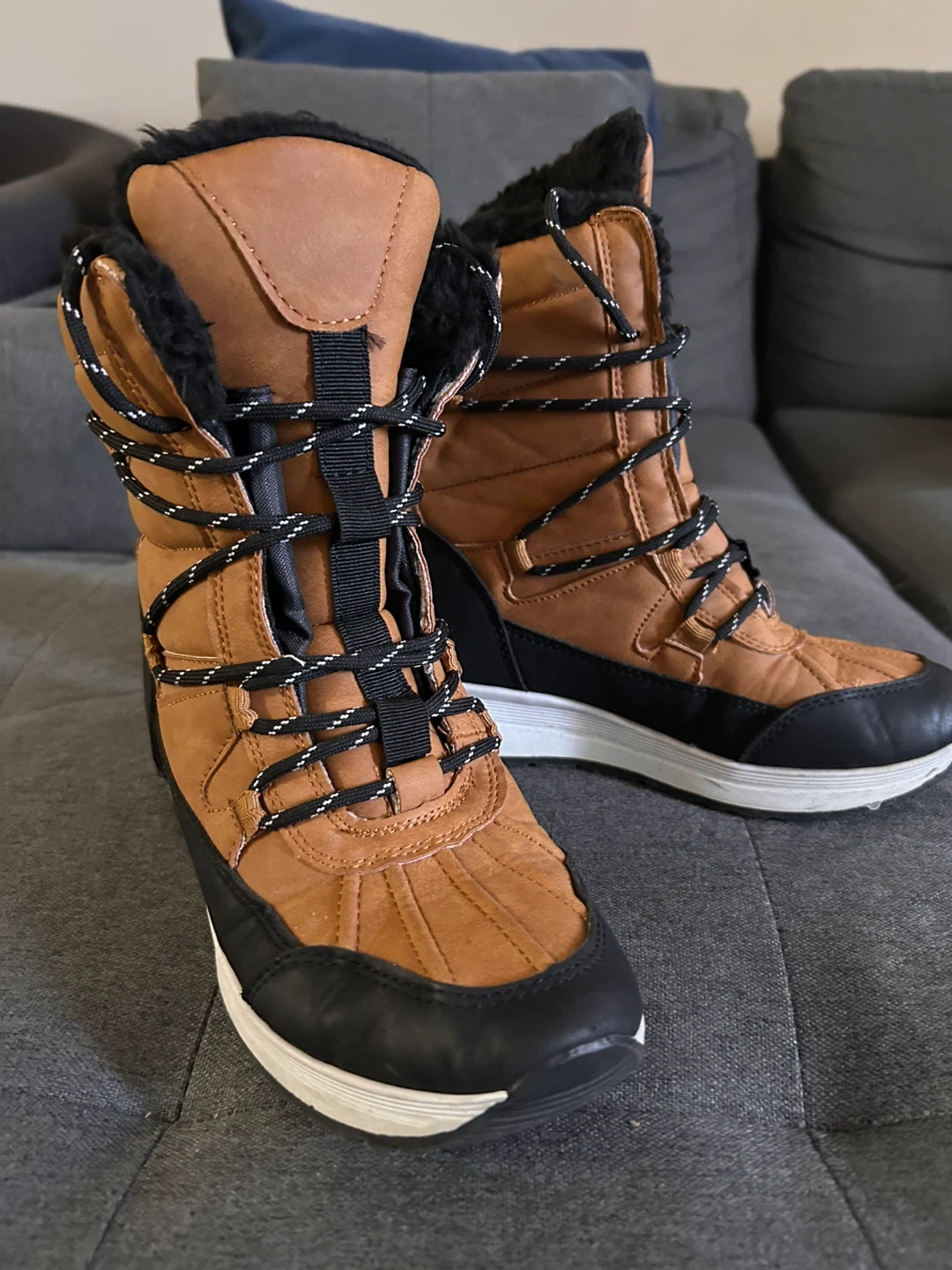 Rush!rush!rush! Only wear twice. 7-8 years old Selling a pair of Thinsulate winter boots in size 8 kids. They're in great condition and ready to keep your feet warm this winter! The boots feature a stylish tan and black design with black laces and a white sole. Free delivery around area!.