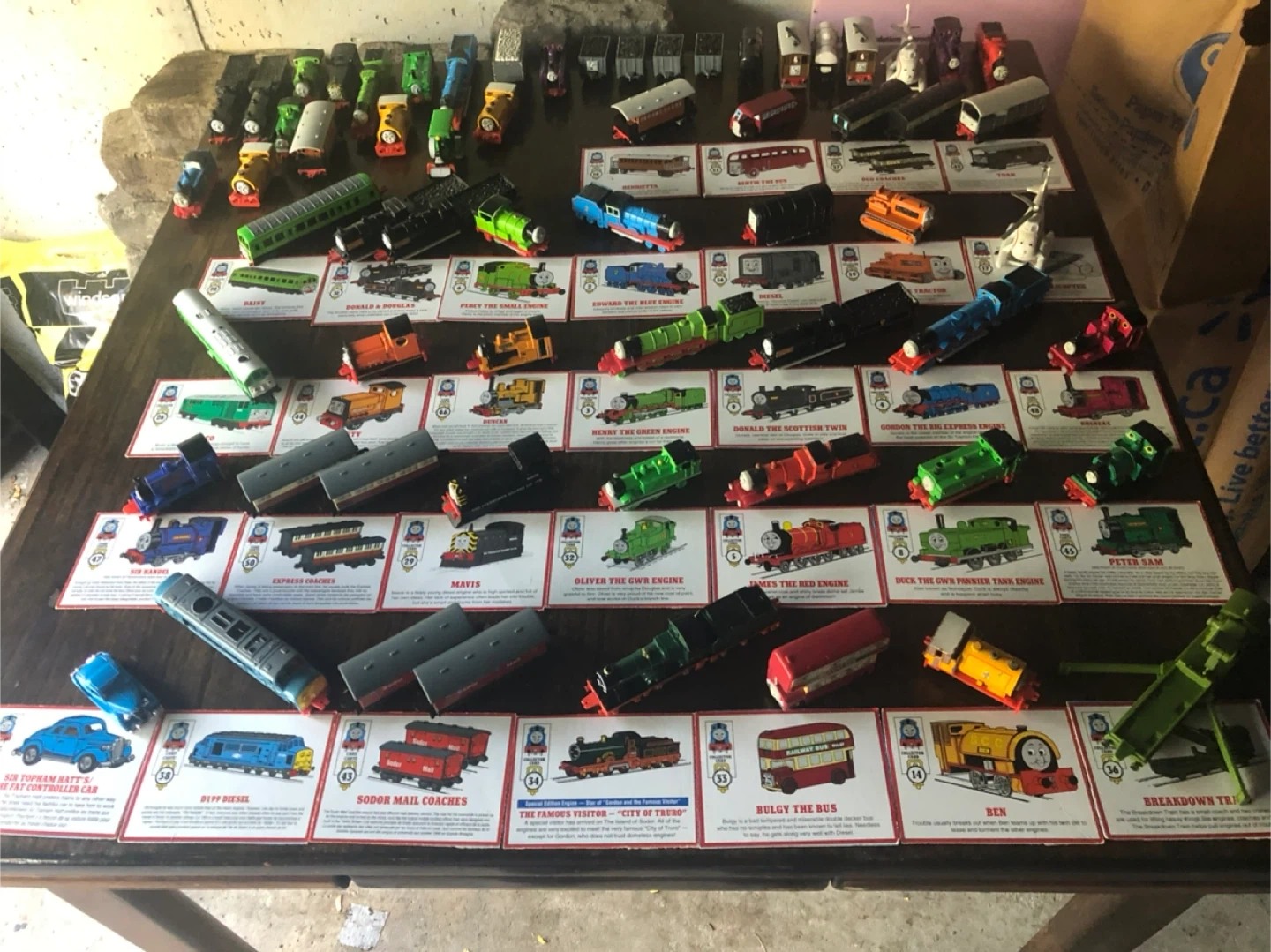 Selling a variety of Thomas & Friends trains and cars! Includes characters like Thomas, Percy, James, and more! Half comes with its character card. 63 die cast 1989