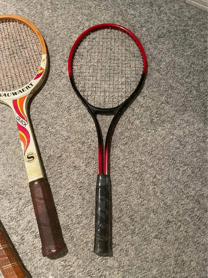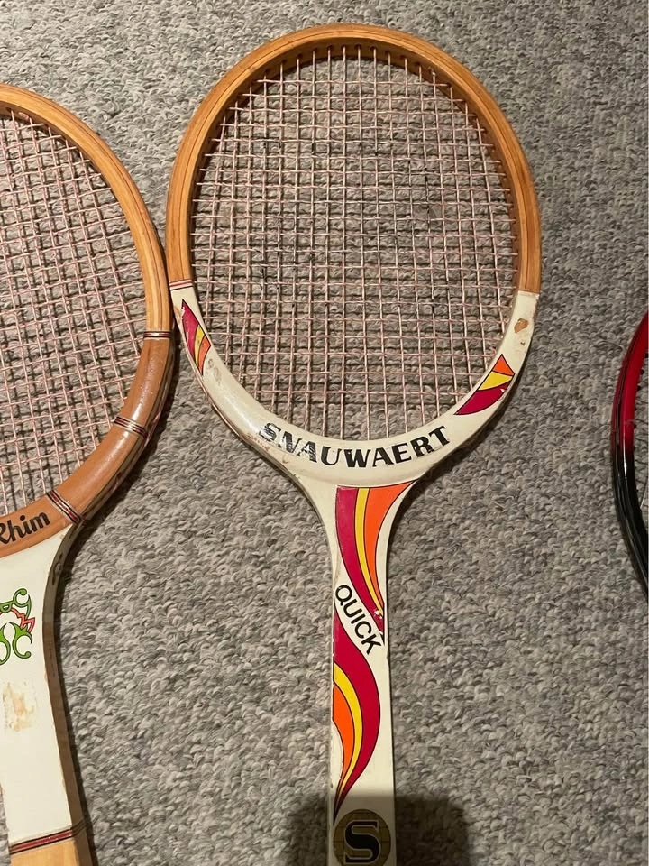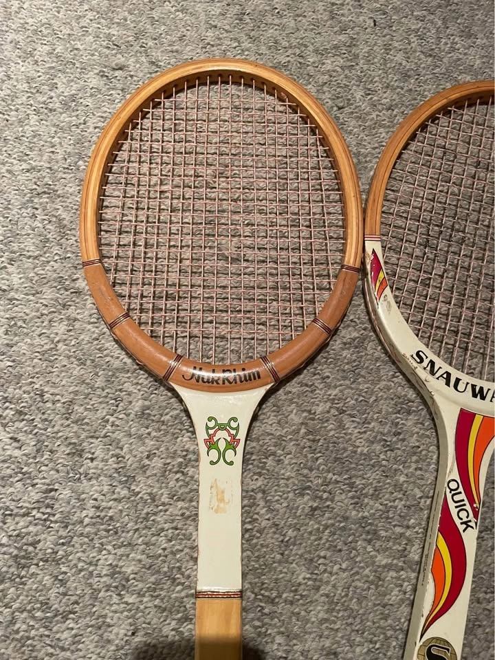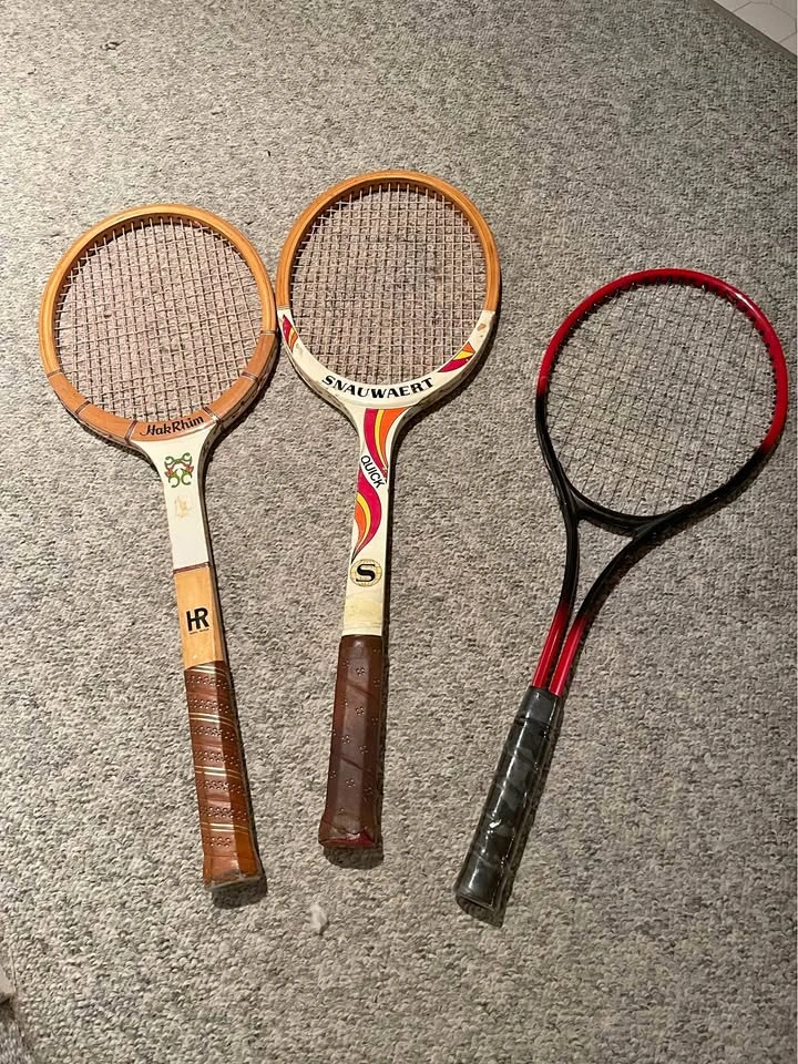 Selling three classic vintage wooden tennis rackets. Perfect for collectors, display, or even a retro game of tennis! Price is for all 3 rackets - Original leather grips - Great conversation pieces or wall décor - Solid condition for their age