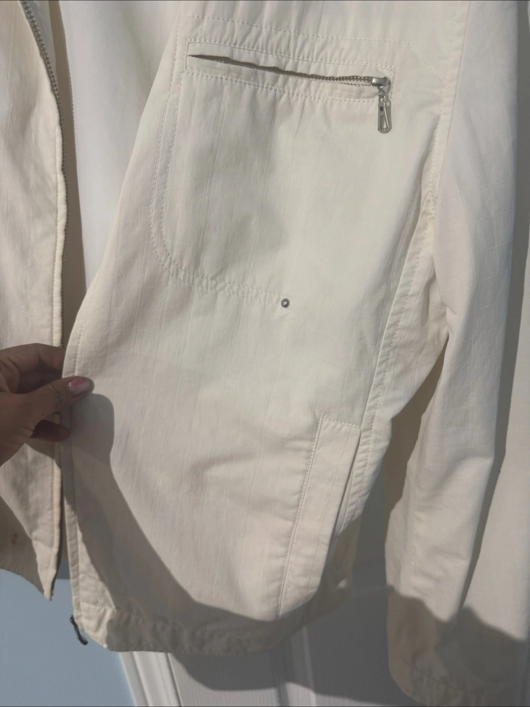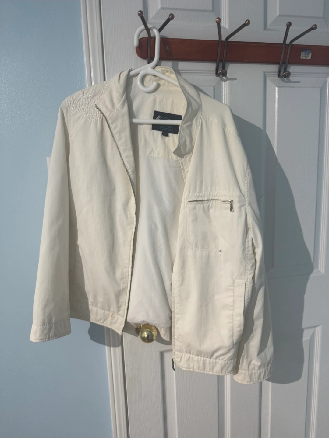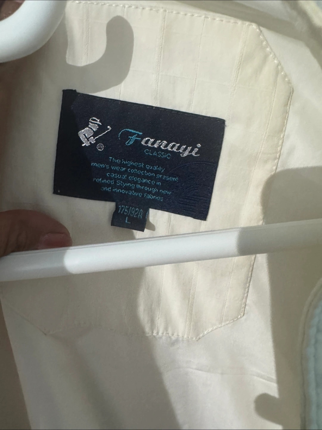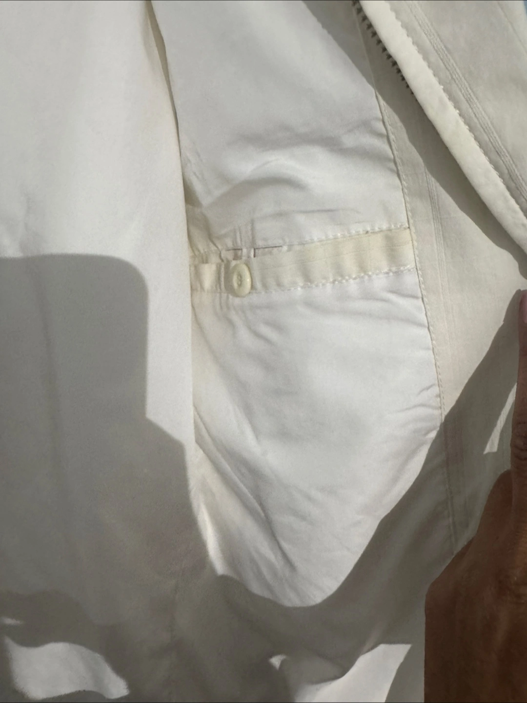 Selling a Fanayi Classic jacket in white. It's a size L and appears to be in good condition. Perfect for layering or wearing on its own!
