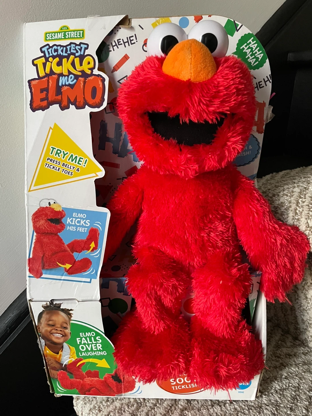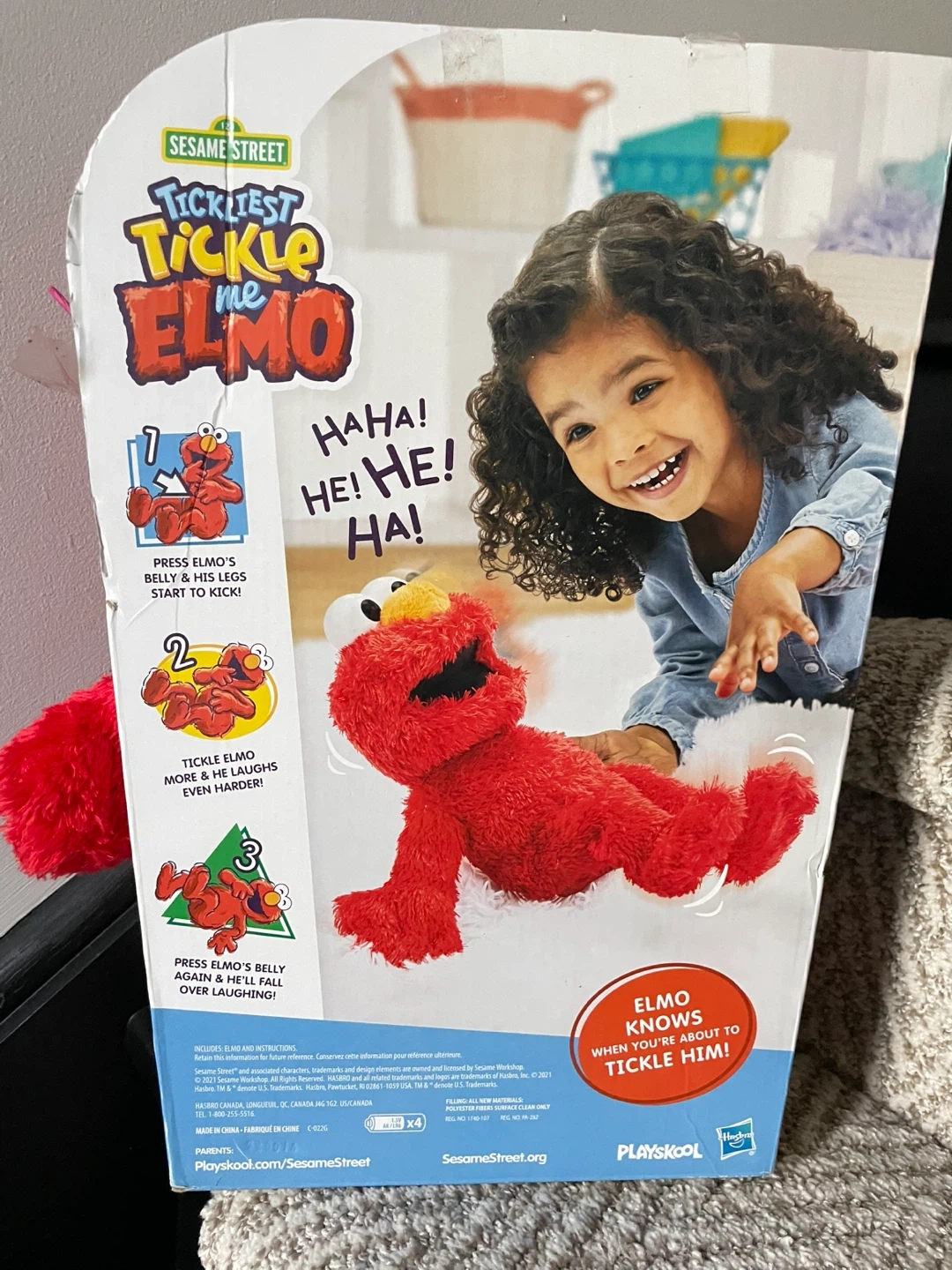 2021 Sesame Street - Tickle Me Elmo, Tickle My Feet. Brand New in Box. $45 firm Selling a Tickle Me Elmo from Sesame Street! This cuddly friend is ready for some ticklish fun. Press Elmo's belly, and his legs start to kick. Tickle Elmo more, and he laughs even harder! Elmo knows when you're about to tickle him. Includes Elmo and instructions. Recommended for ages 18 months and up