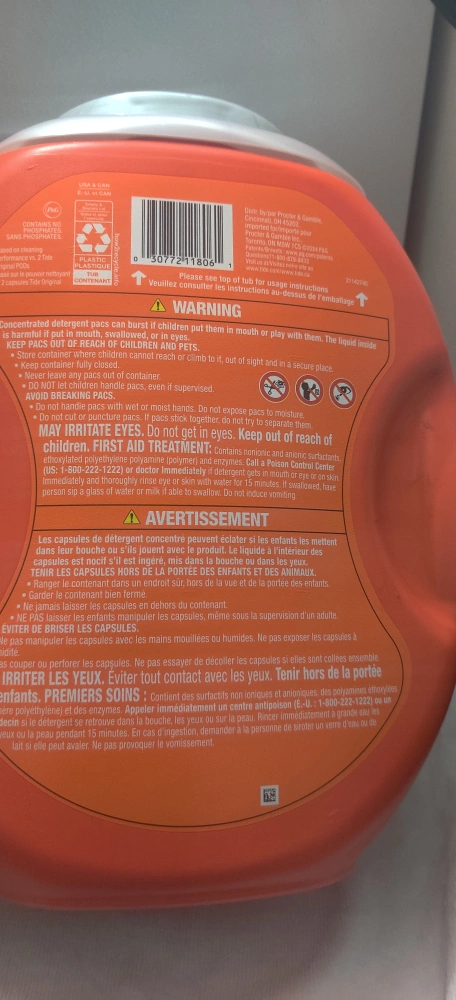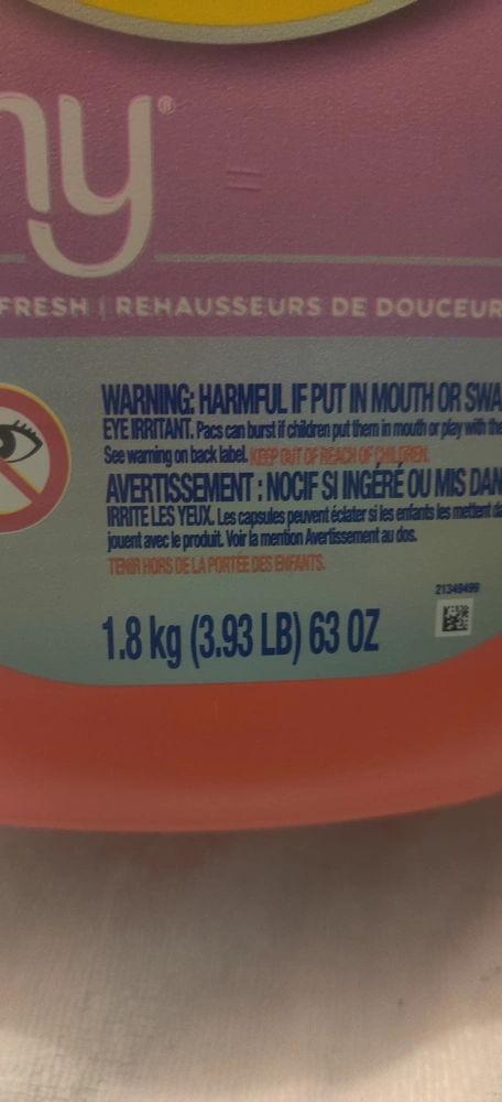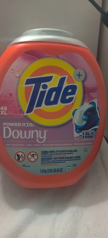 Selling a container of Tide Power Pods with Downy. It's the 45XL pack. The container weighs 1.8 kg (3.93 LB) / 63 OZ