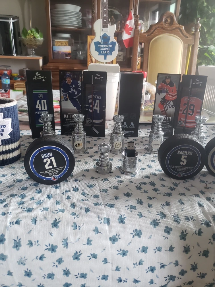 I have a variety of Tim Hortons Toronto Maple Leafs collectibles available. They are in great condition and would be perfect for any Leafs fan!