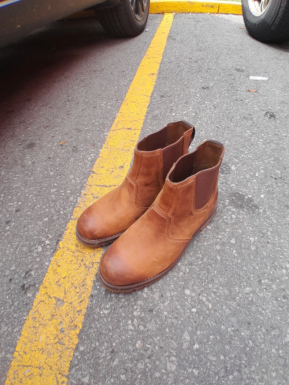 Timberland Chelsea boots in brown leather. They are in good condition and have a comfortable fit. Perfect for everyday wear! Size 9 These boots are built to be 'Guaranteed Tough' and durability 100% authentic used like new excellent condition. (24hrs Free delivery within GTA) Door Drop off/ Pick Up available Postal Services Nationwide Available Pick Up Locations: Mississauga or Toronto .