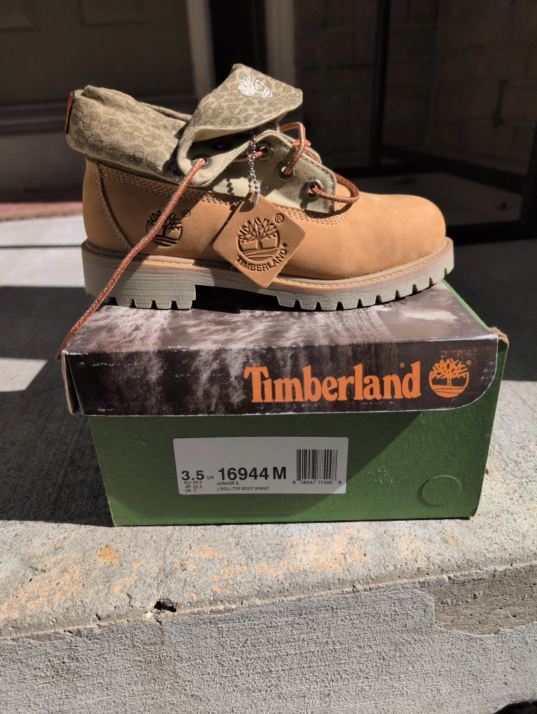 Selling a pair of Timberland Roll-Top boots in wheat colour. These are size 3.5 and come with the original box. Perfect for keeping your feet warm and stylish! Vintage.