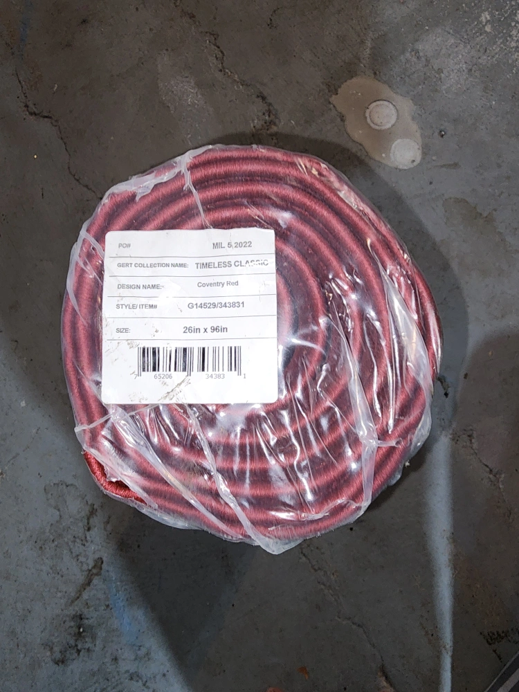 Selling a Timeless Classic rug in Coventry Red! It's 26 inches by 96 inches. The design name is Coventry Red. It's still in its original packaging