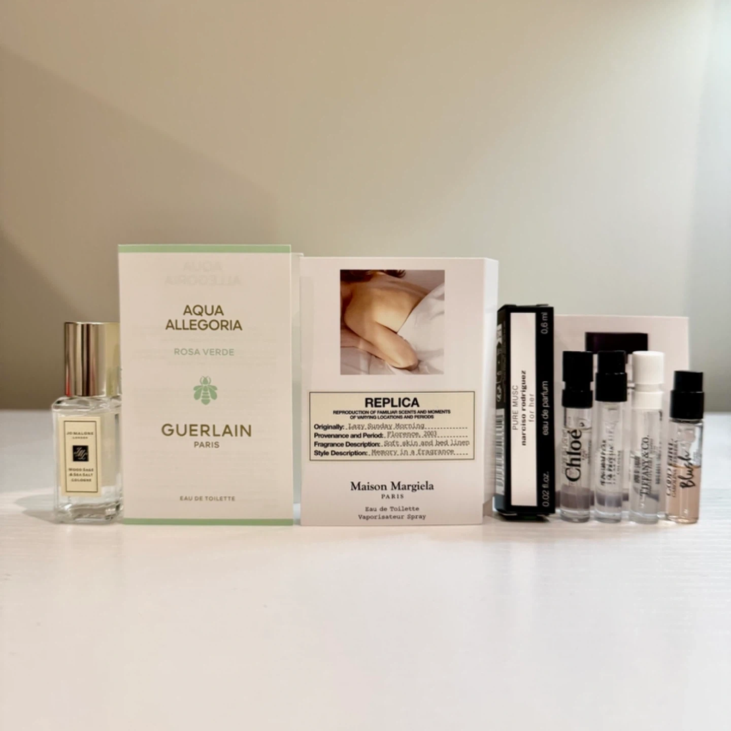 The theme of this bundle is anchored on Jo Malone Wood Sage & Sea Salt. Vibe: Understated elegance and modern femininity. Supporting Minis: • Guerlain Rosa Verde – a fresh, green rose with dewy brightness. • Maison Margiela Lazy Sunday Morning – soft cotton and skin; calm, clean comfort. • Narciso Pure Musc for Her – velvety musk; minimal, sensual, magnetic. • Chloé EDP – rose and powder, graceful and timeless. • Jo Malone English Pear & Freesia – crisp pear, soft florals, classic charm. • Tiffany & Co EDP – radiant and refined, with a sparkling modern touch. • Carolina Herrera Good Girl Blush – powdery floral femininity with a playful sweetness. FAQs: • Is the price for everything shown? Yes — the listed price includes the 9mL Jo Malone bottle including all the supporting minis. • What are the minis? The minis are authentic sample-sized perfumes curated to match the timeless feel of Wood Sage & Sea Salt.