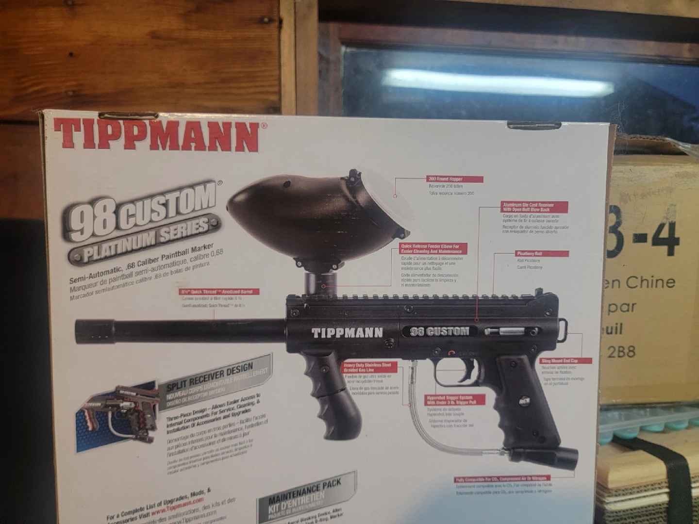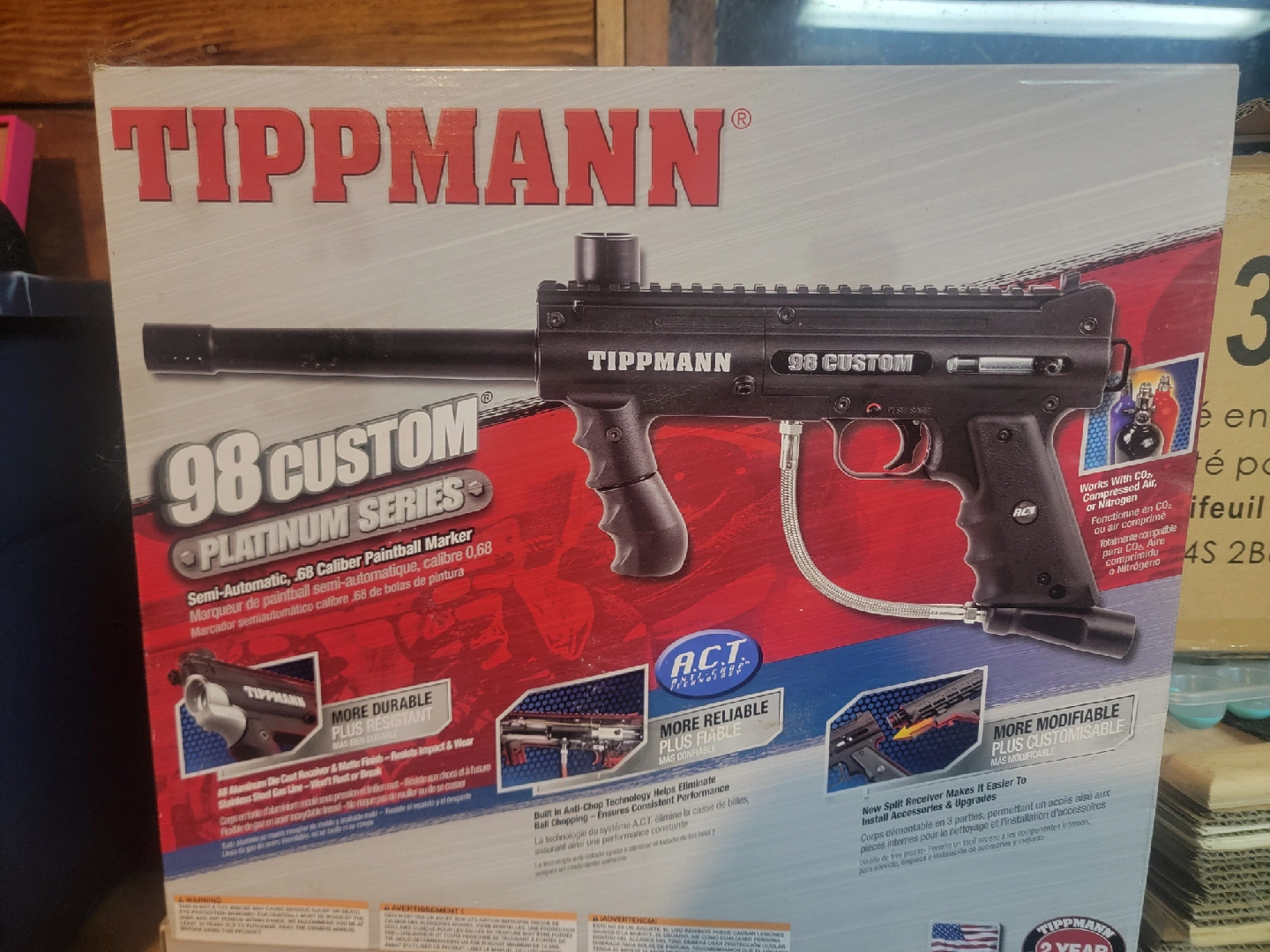Selling a Tippmann 98 Custom Platinum Series paintball marker. This semi-automatic .68 caliber paintball marker is durable and reliable with A.C.T (Anti Chop Technology) for enhanced performance. Features include a split receiver design for easy upgrades and maintenance. Comes with original box and maintenance pack. Hi I don't have any air tanks for it I sold that to my friend n the paintballs got to old so I only have the guns asking for $250