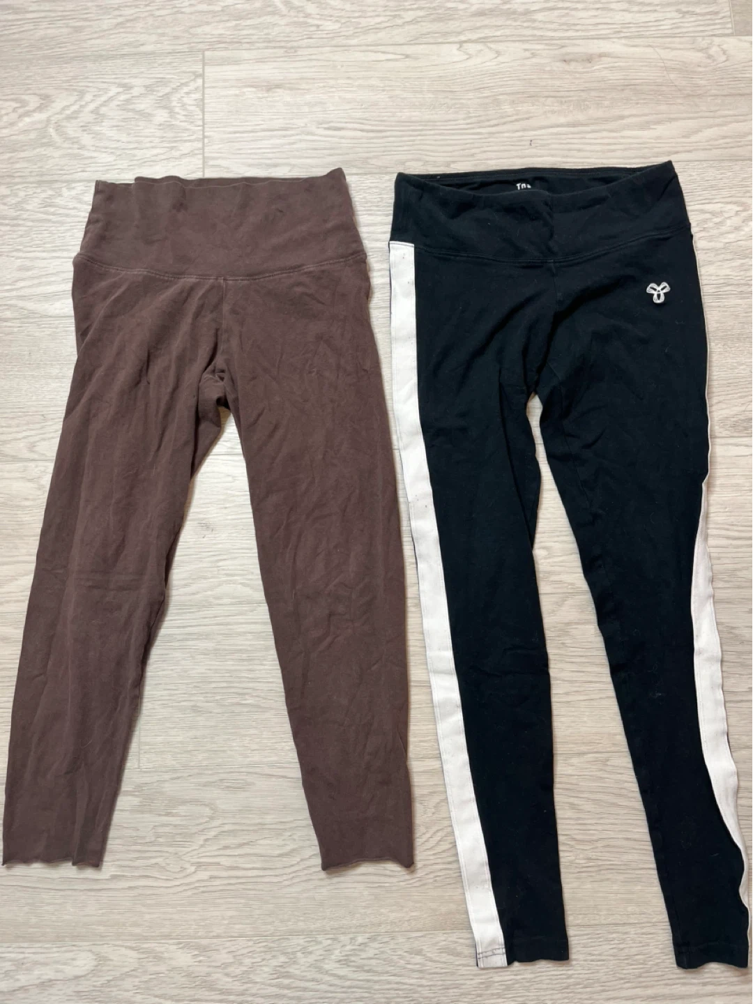 Selling a bundle of two leggings! Both pairs is from TNA, black with a white stripe and brown. Both are in good condition 2 for $30 Brown is Size Small Black is XS