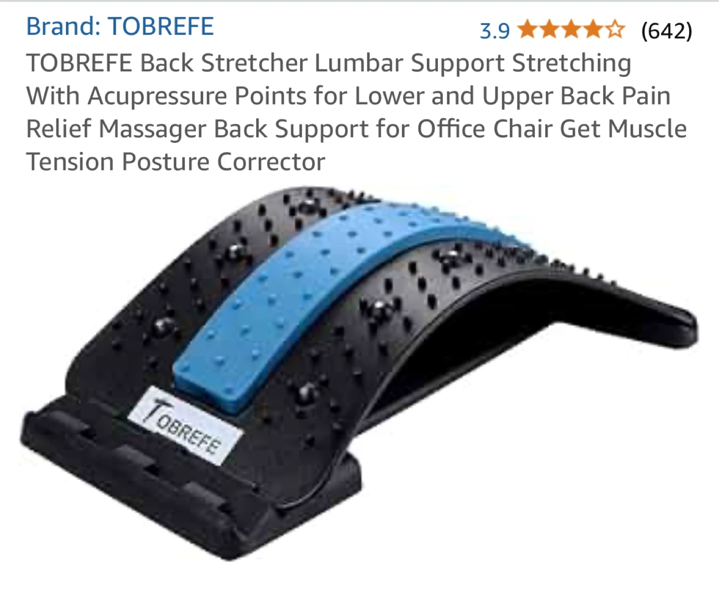 Selling a TOBREFE back stretcher, great for lumbar support and stretching. It has acupressure points for lower and upper back pain relief. It can also be used as a massager and posture corrector for office chairs to relieve muscle tension