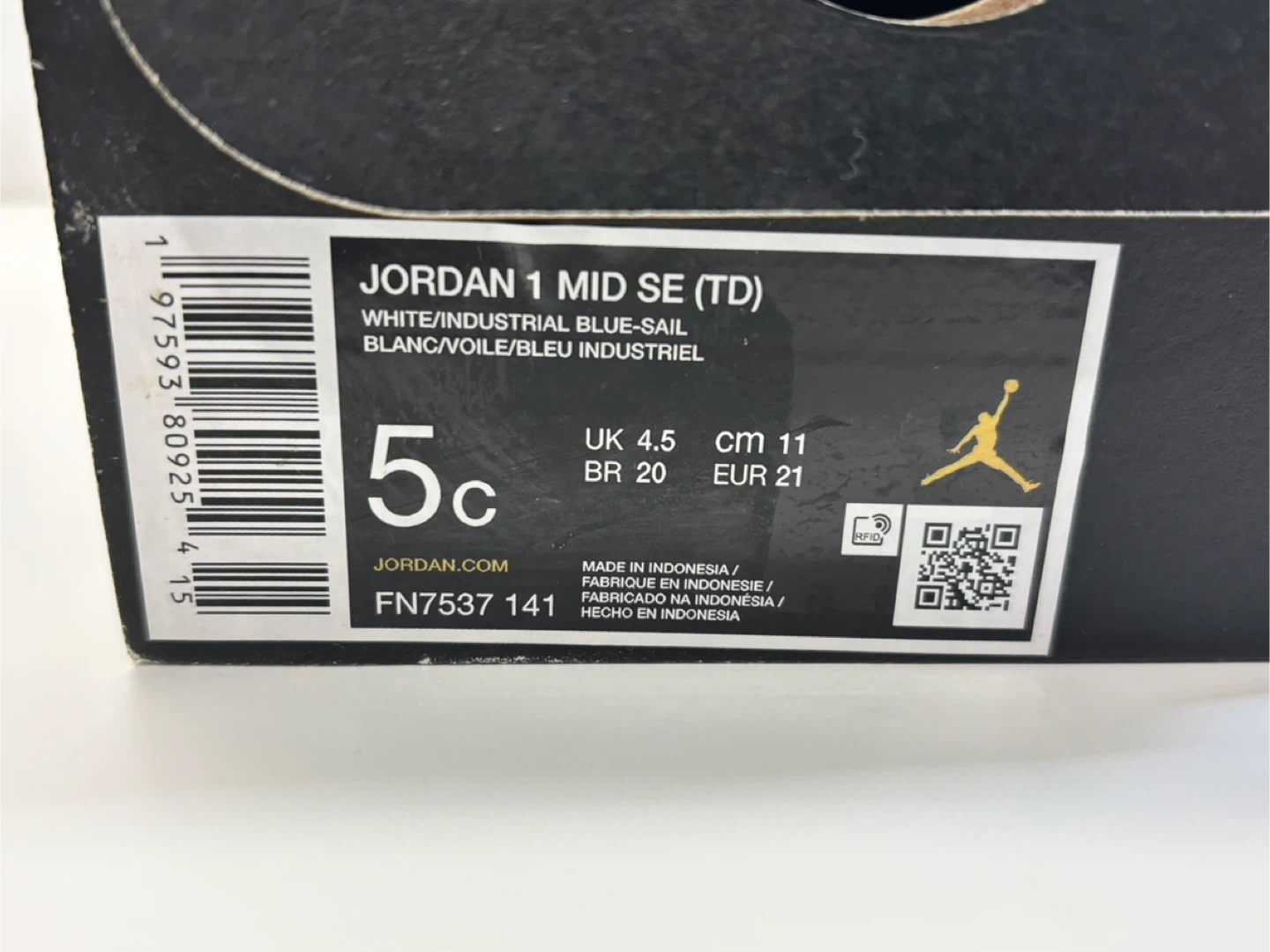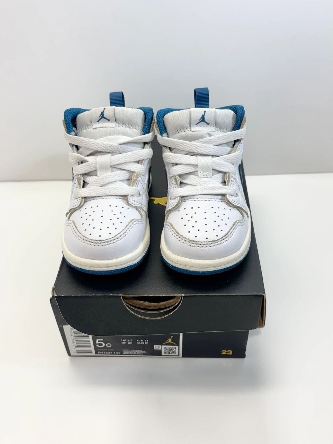 Toddler shoes size 5c Jordan 1 Mid SE White/Blue