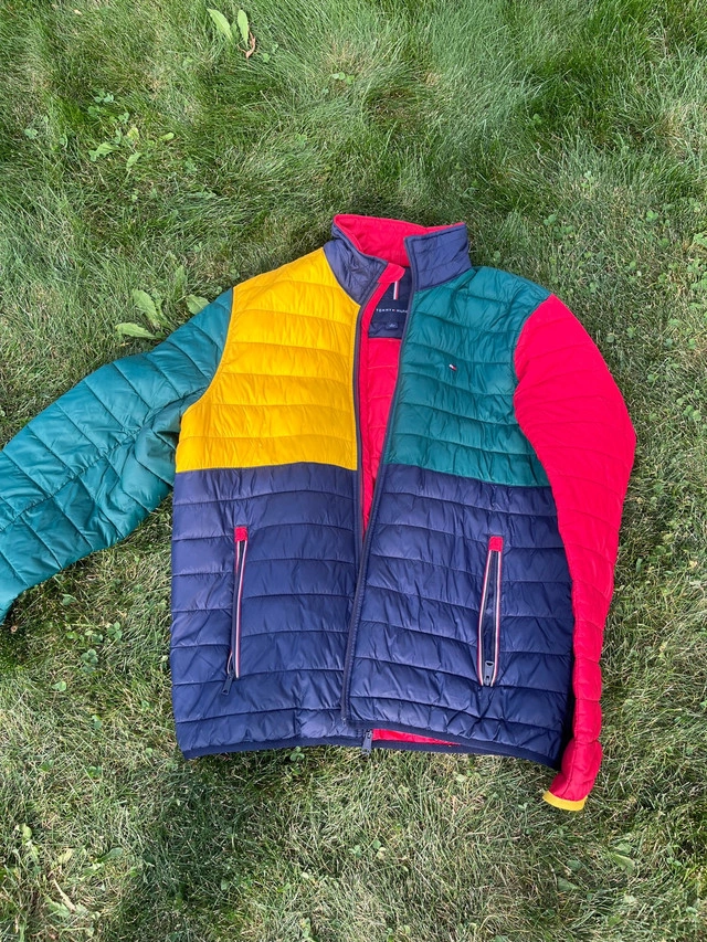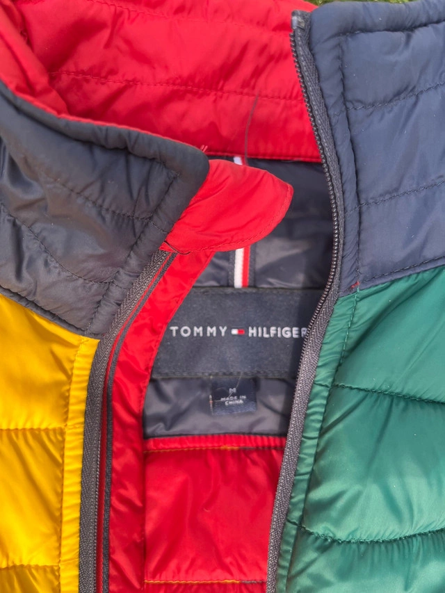 This vibrant Tommy Hilfiger jacket is ready to turn heads with its colourful panelling and lightweight design, perfect for transitional weather. Great condition, offering both style and comfort. Key features include: - Colour-block design with red, yellow, green, and blue panels - Lightweight, quilted construction - Full zip closure - Two side pockets with red zipper detailing - Signature Tommy Hilfiger logo on the chest If the ad is up, the jacket is available. It's waiting for a new home – maybe yours?