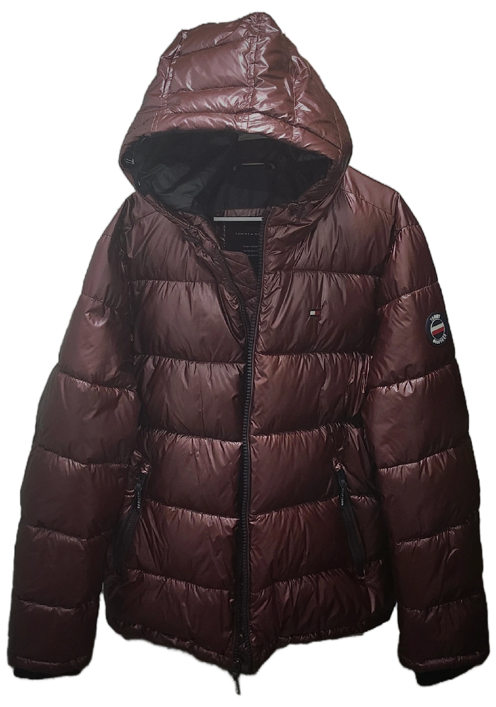 Tommy Hilfiger puffer jacket in a beautiful burgundy colour! It's warm like down, water-resistant, and wind-resistant, perfect for the Canadian weather! It's unisex!!