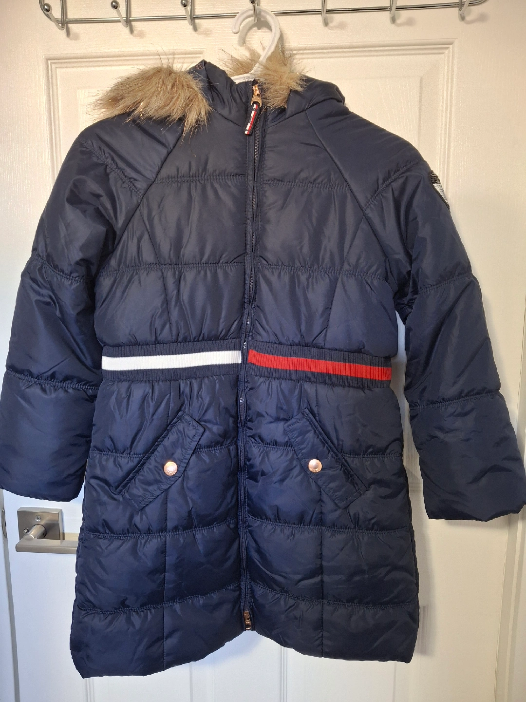 Tommy Hilfiger quilted jacket. It's in excellent condition and features a stylish design. Perfect for staying warm and fashionable during cooler weather!