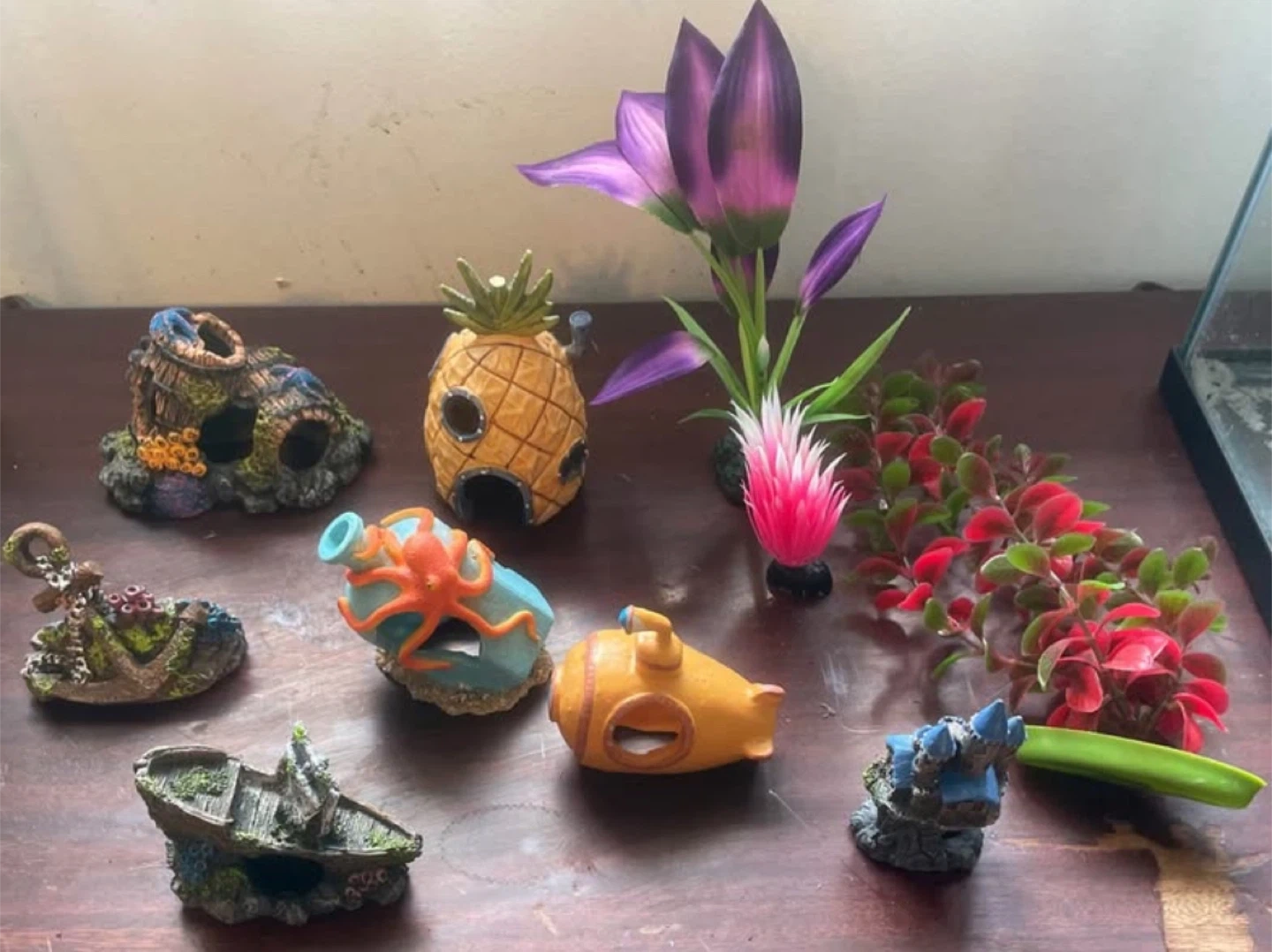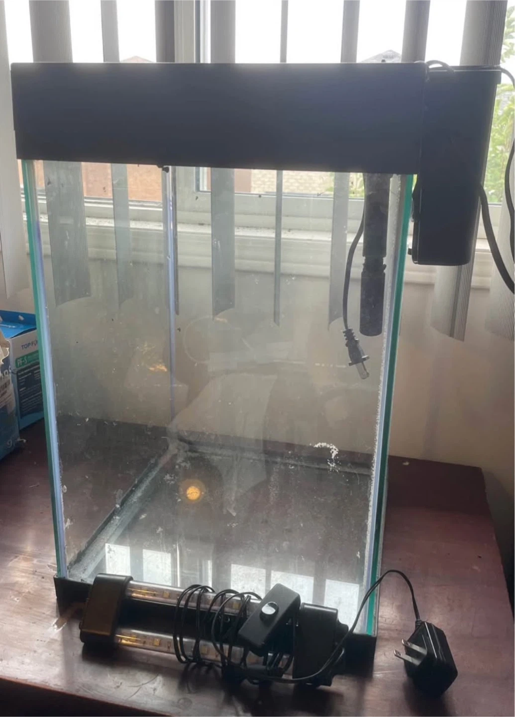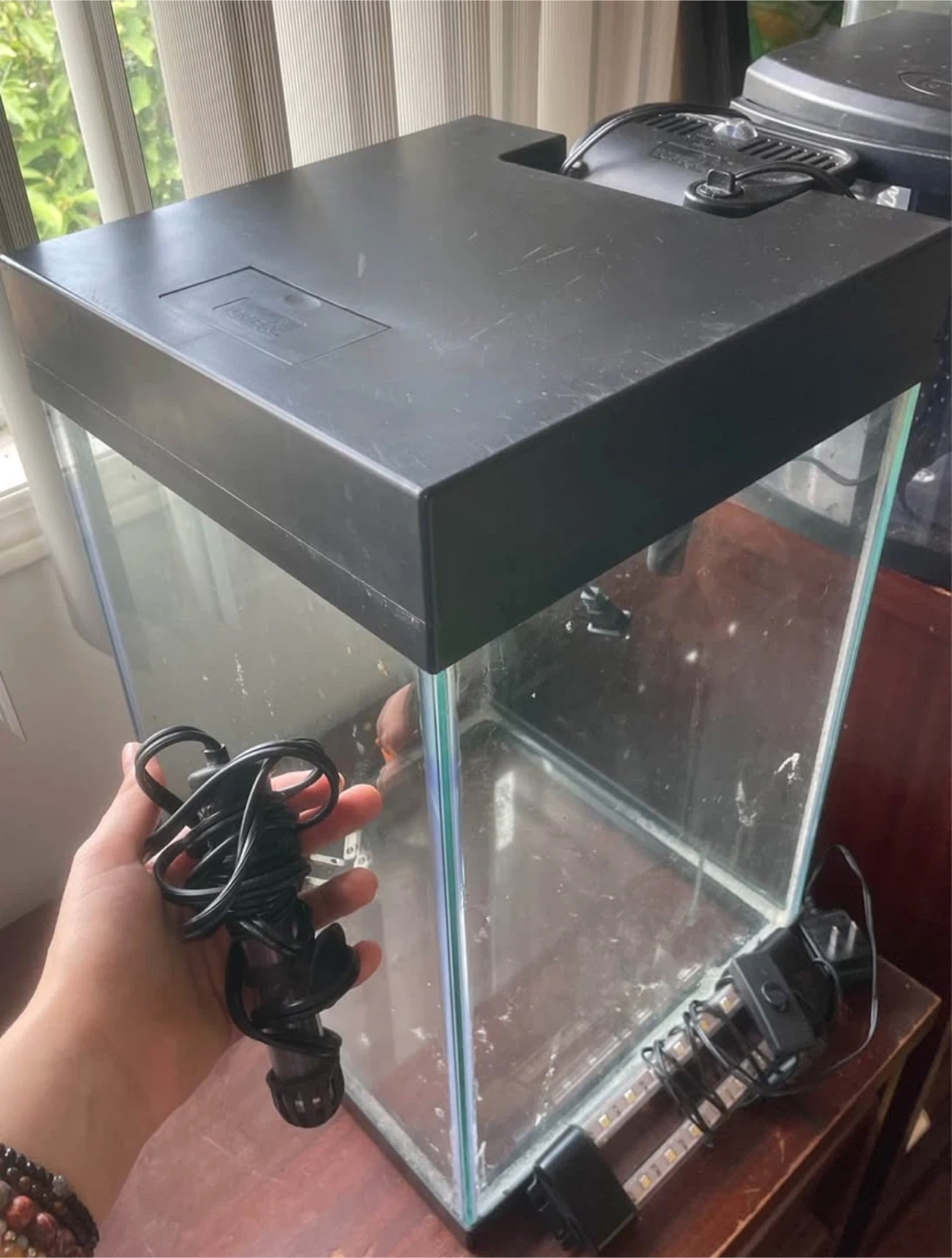 Selling a Top Fin Fascinate Column 10-gallon fish tank. The kit includes the tank, filter, a pack of filter cartridges, and any of the decorations and plants shown in the last photo that you’d like! In great condition. Originally bought for $120+tax - asking $60