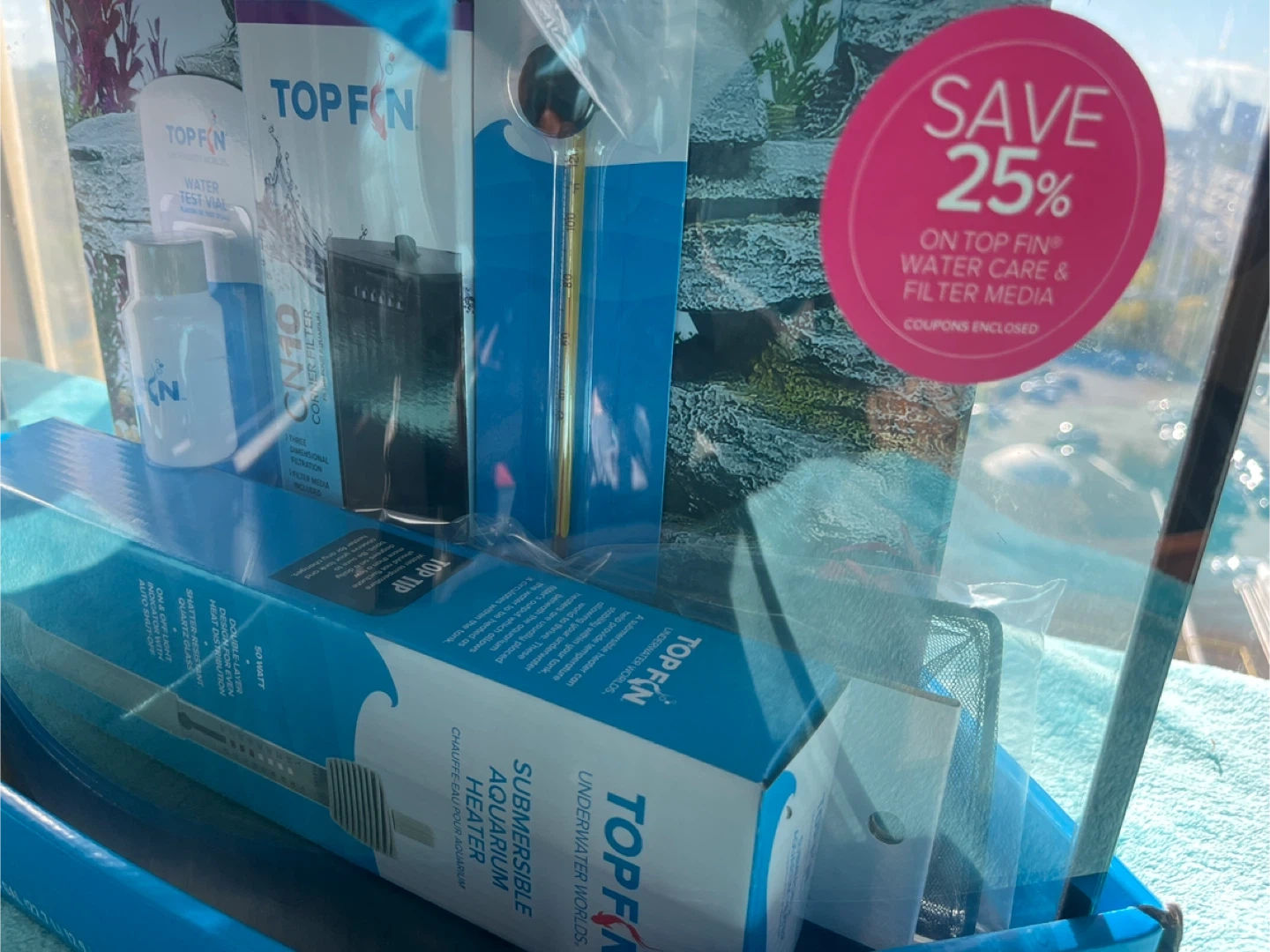 Selling a brand new Top Fin All-in-One Aquarium Starter Kit, perfect for setting up a small aquarium. The kit includes: - 6 Gallon tank - Heater - Filter - Water test vial - Other accessories to get you started Delivery available